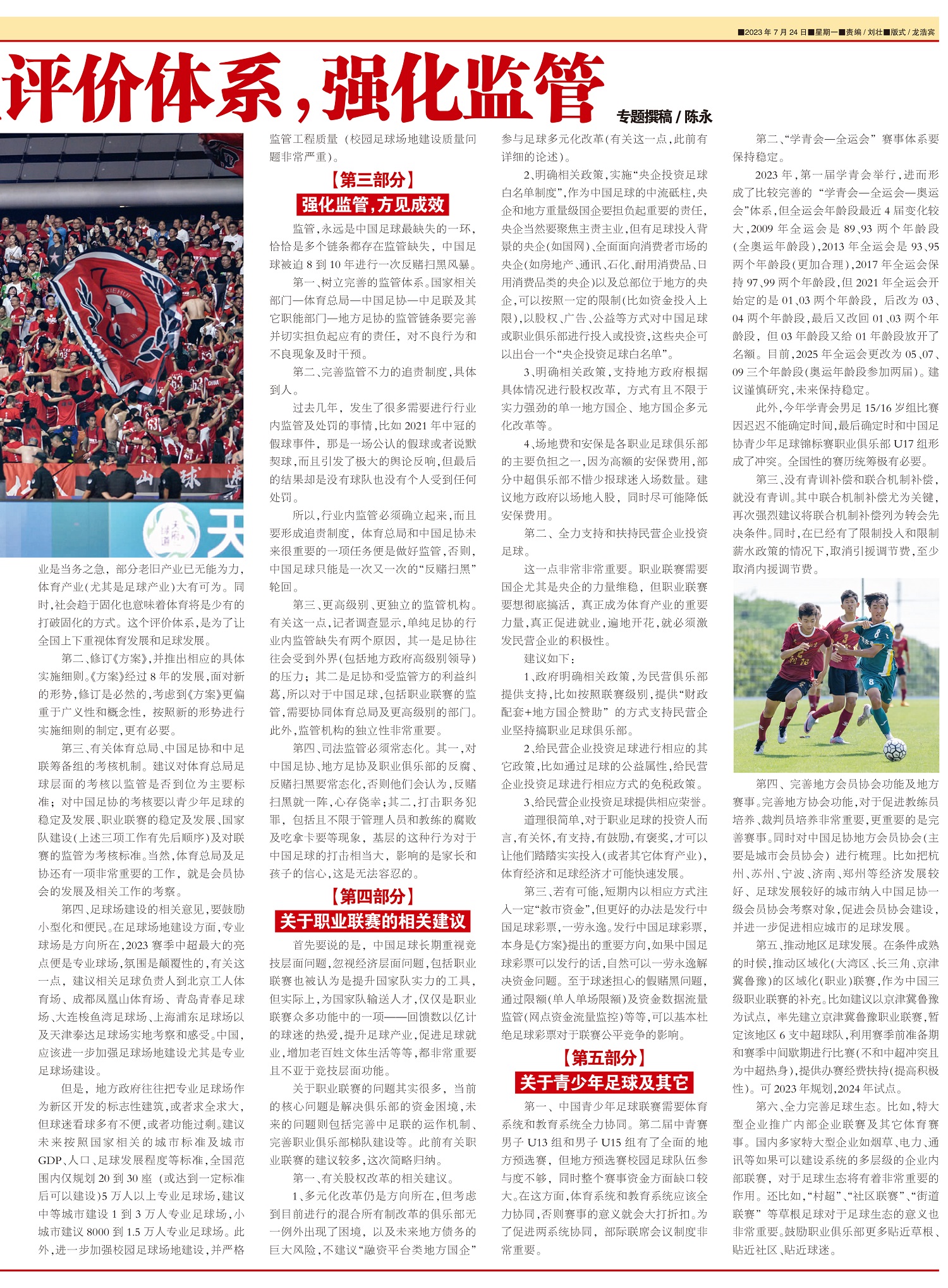 关于中国足球发展的若干建议——保持稳定、重塑评价体系,强化监管