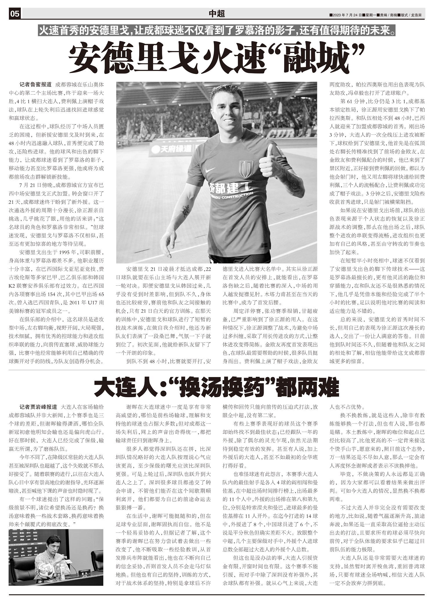 火速首秀的安德里戈,让成都球迷不仅看到了罗慕洛的影子,还有值得期待的未来。 安德里戈火速“融城”