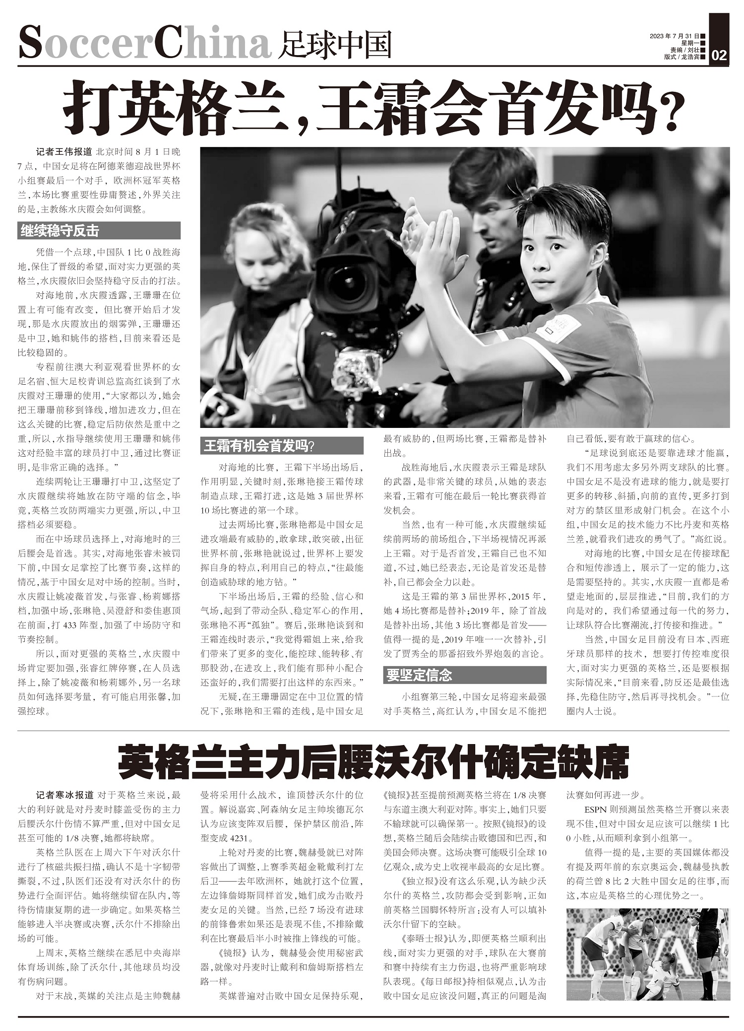北京时间8月1日晚7点,中国女足将在阿德莱德迎战世界杯小组赛最后一个对手,欧洲杯冠军英格兰,本场比赛...
