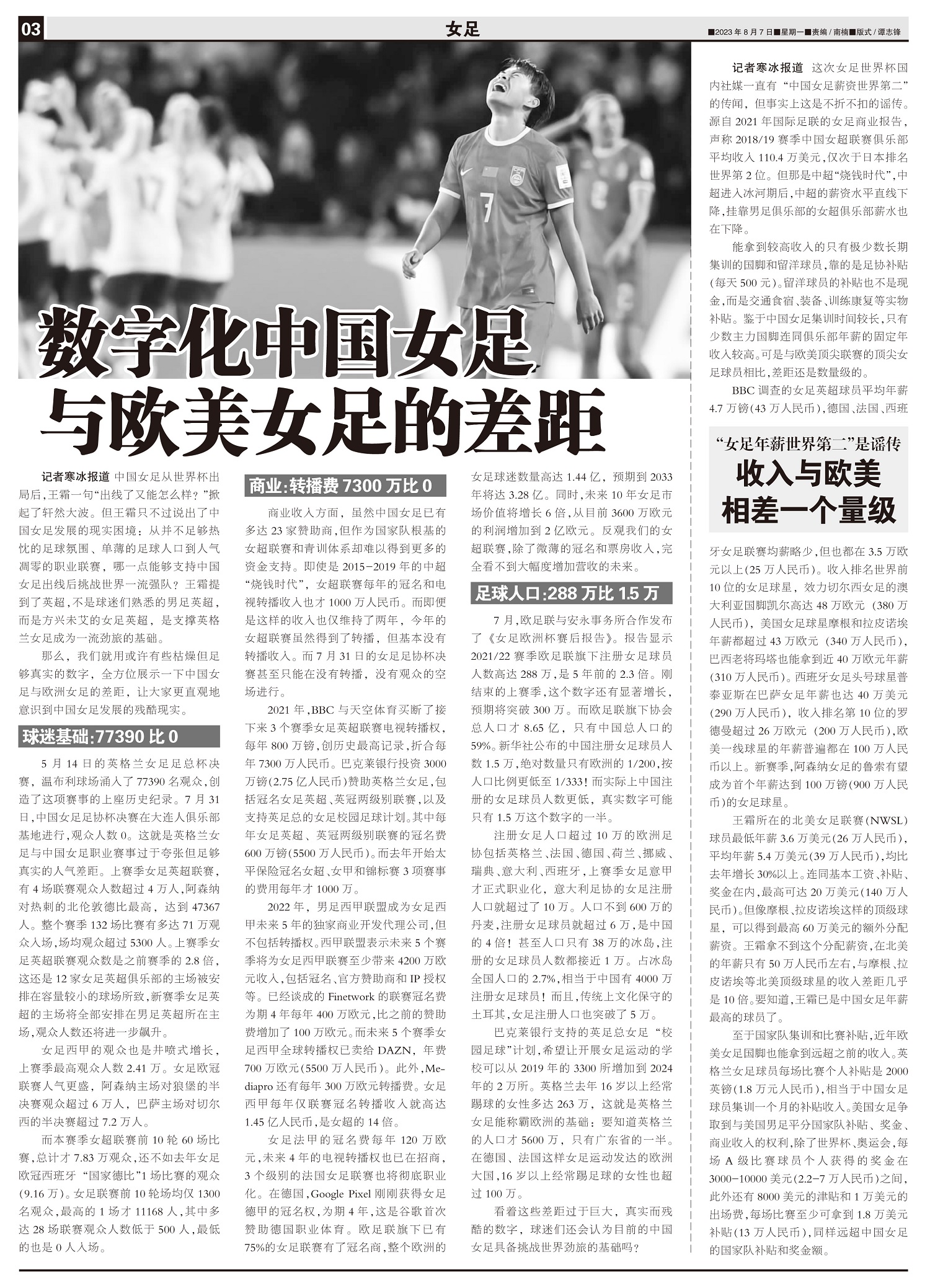 “女足年薪世界第二”是谣传 收入与欧美相差一个量级