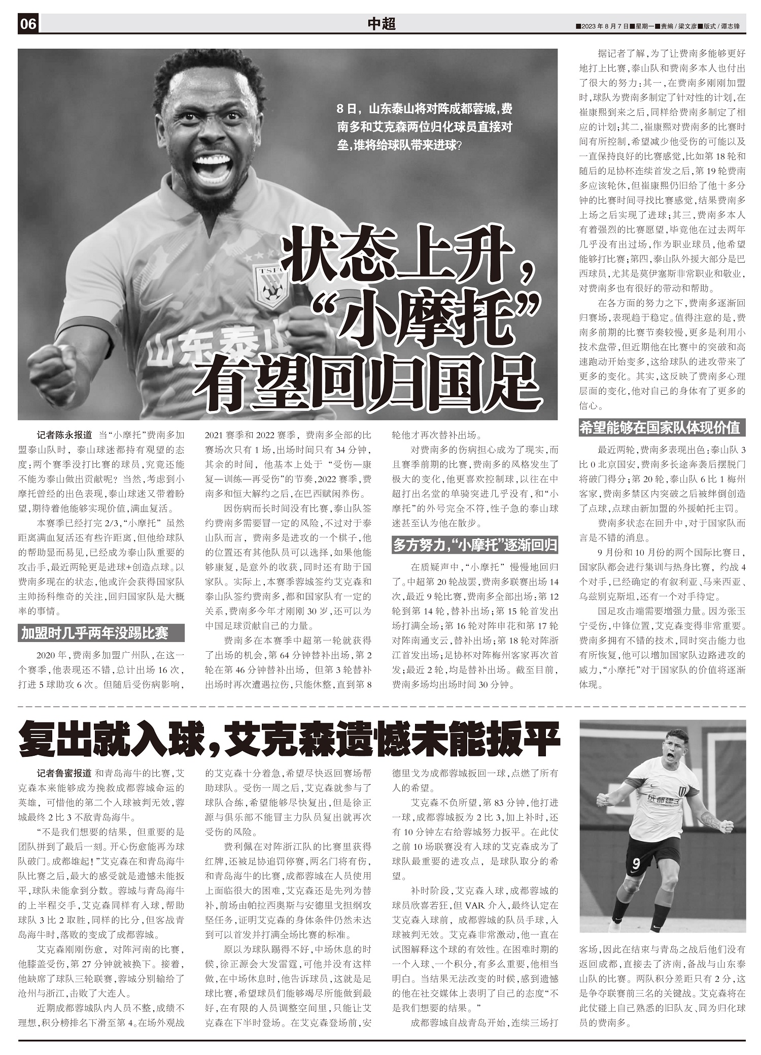 当“小摩托”费南多加盟泰山队时,泰山球迷都持有观望的态度:两个赛季没打比赛的球员,究竟还能不能为泰山...