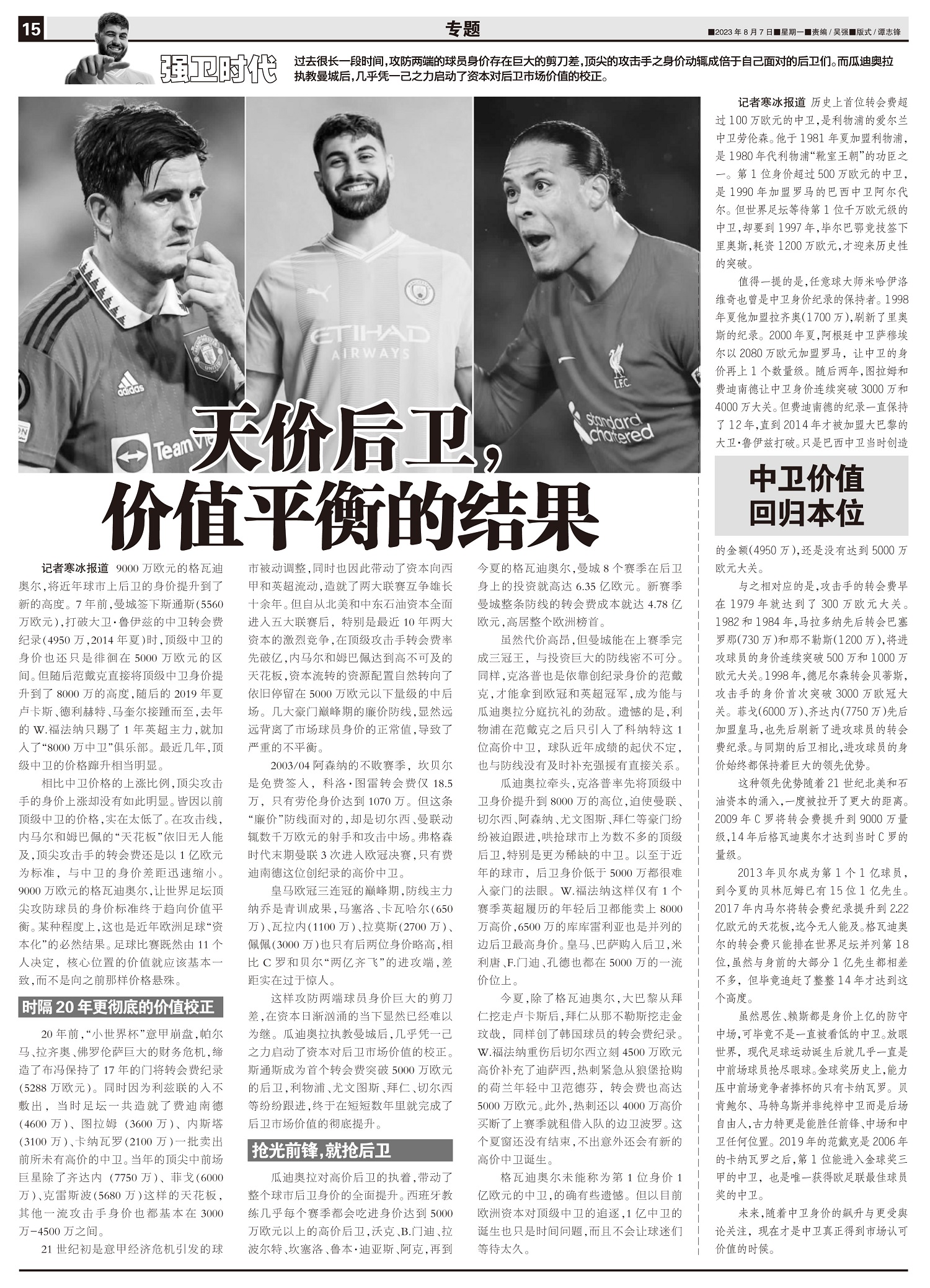 强卫时代过去很长一段时间,攻防两端的球员身价存在巨大的剪刀差,顶尖的攻击手之身价动辄成倍于自己面对的...