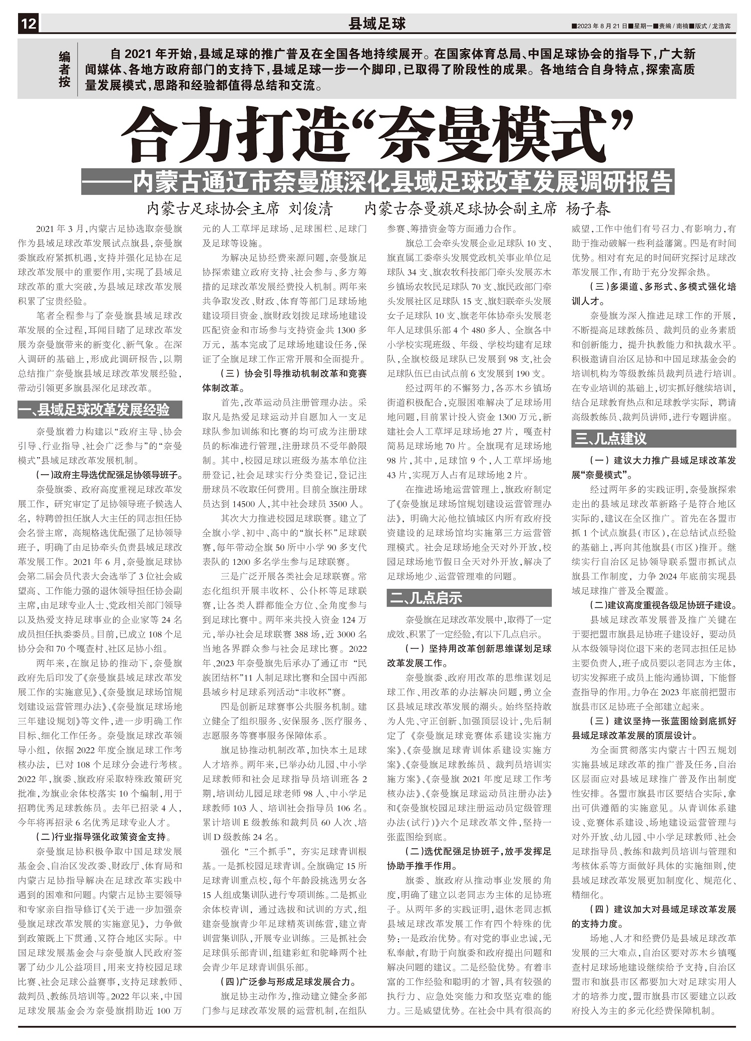 合力打造“奈曼模式” ——内蒙古通辽市奈曼旗深化县域足球改革发展调研报告