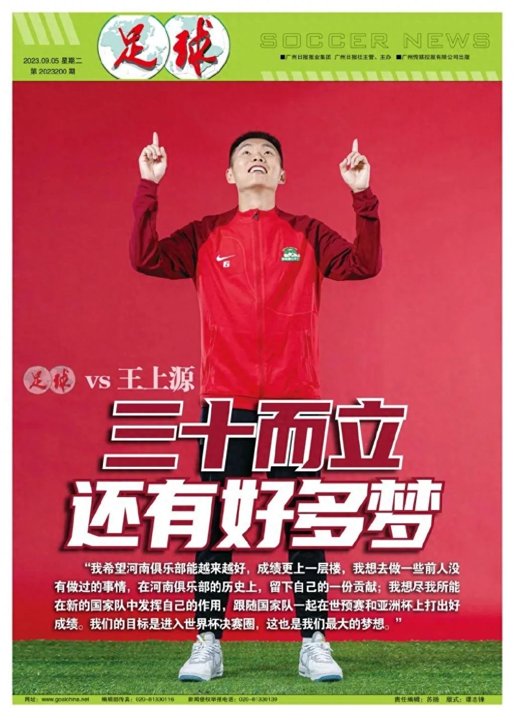 王上源:国家队对我来讲永远是巨大的荣誉,每次能被国家队征召,都是我的荣耀,我时刻准备好为国效力。其实不存在任务重或者轻,在俱乐部我是队长,帮助队伍是我的责任;国家队是我的梦想,我会为之付出全部。