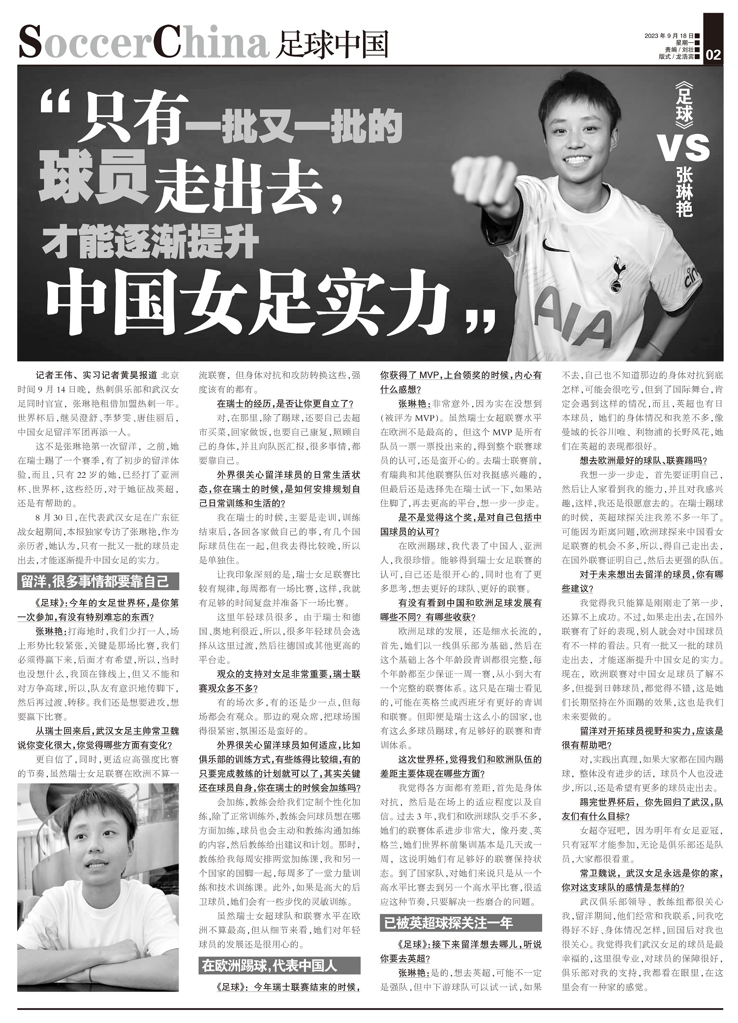 《足球》VS张琳艳 “只有一批又一批的球员走出去,才能逐渐提升中国女足实力”