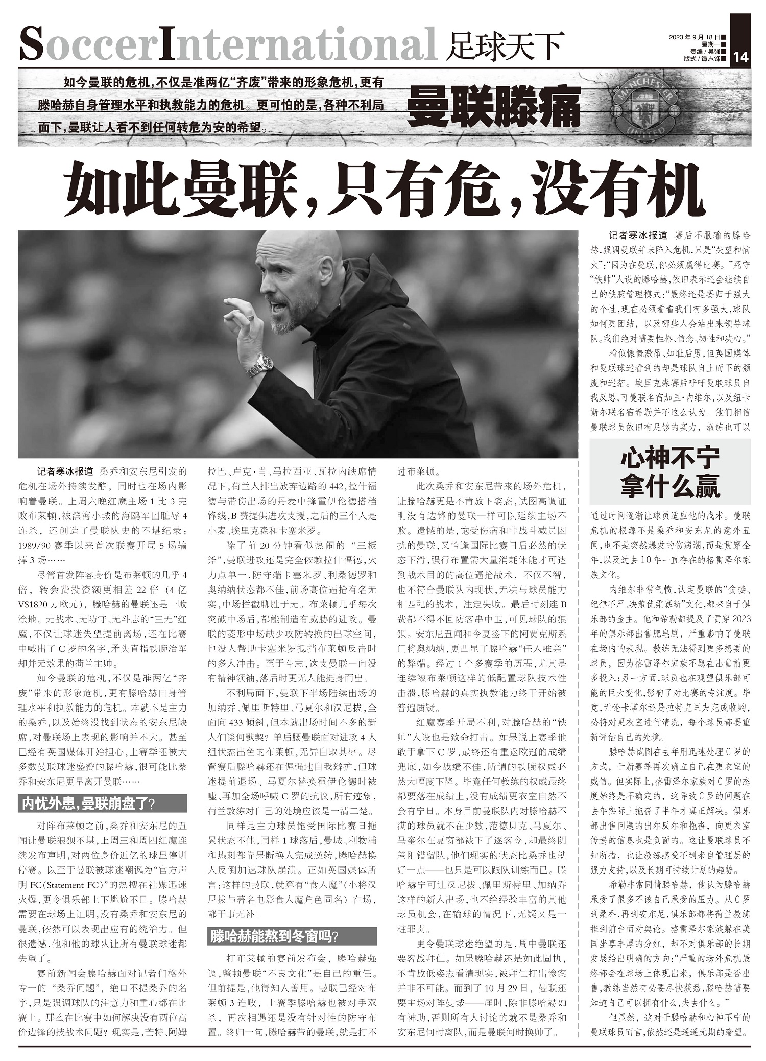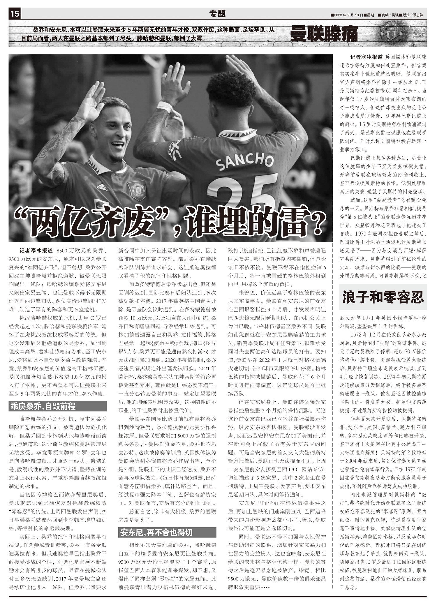 曼联滕痛桑乔和安东尼,本可以让曼联未来至少5年两翼无忧的青年才俊,双双作废,这种局面,足坛罕见。从目...
