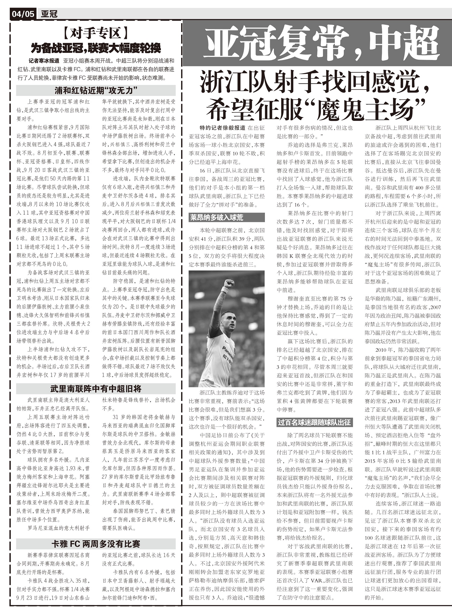 在出征亚冠客场之前,浙江队在中超赛场客场一球小胜北京国安,本赛季双杀国安,联赛10轮不败,积分已经追...