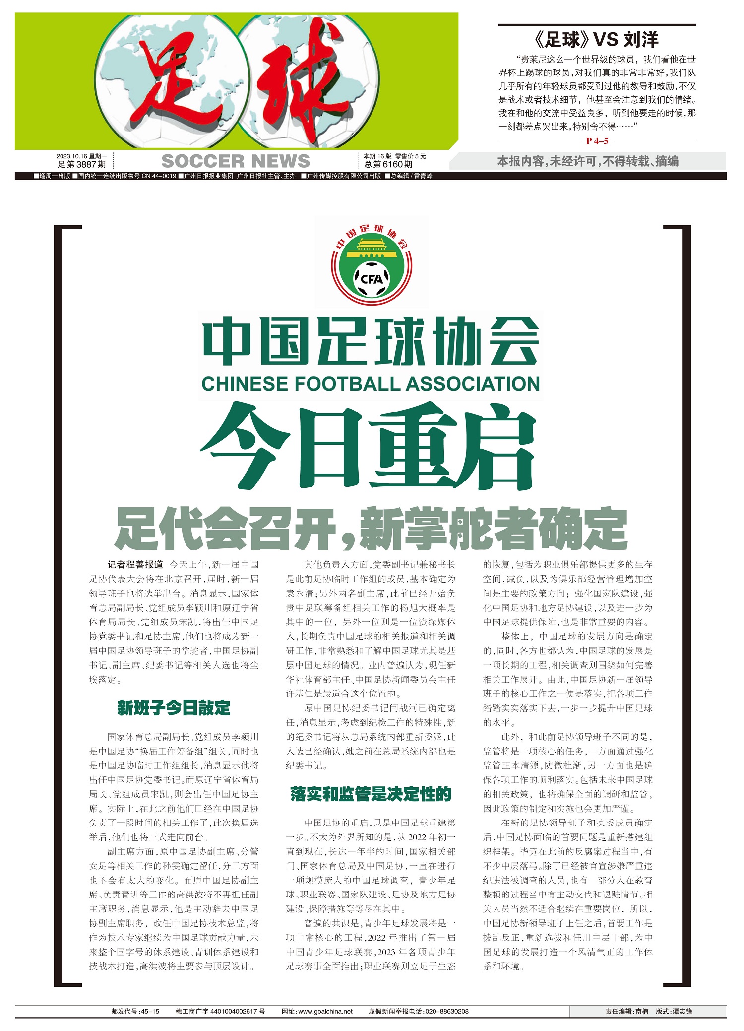 中国足球协会今日重启 足代会召开,新掌舵者确定