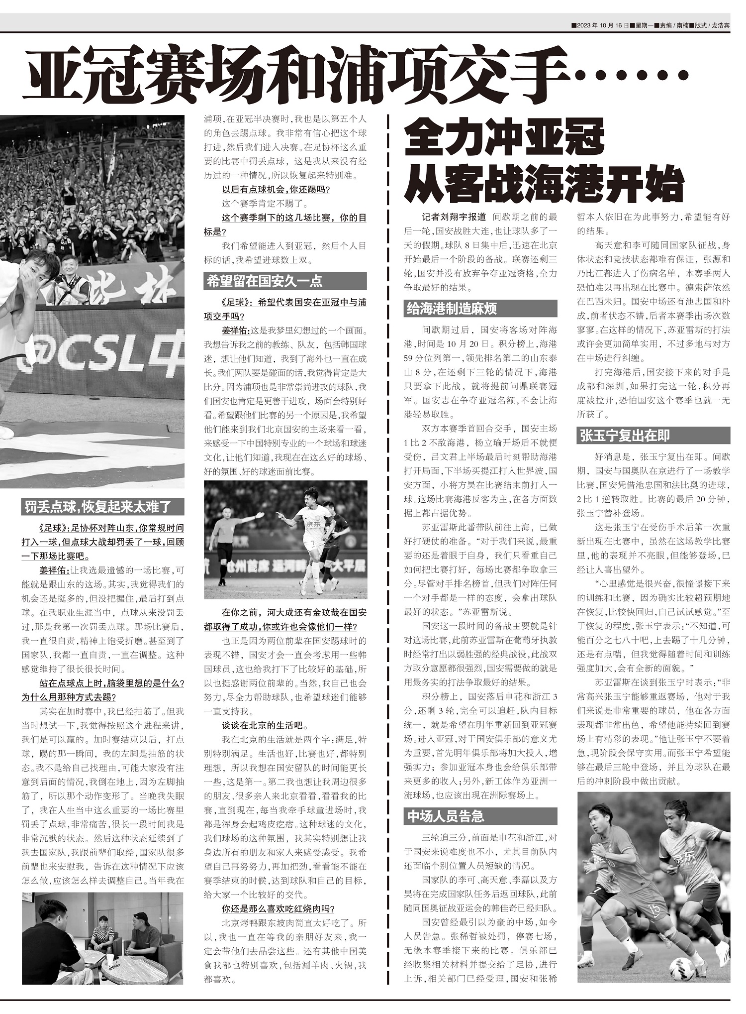 《足球》VS姜祥佑 姜祥佑:希望代表国安在亚冠赛场和浦项交手……