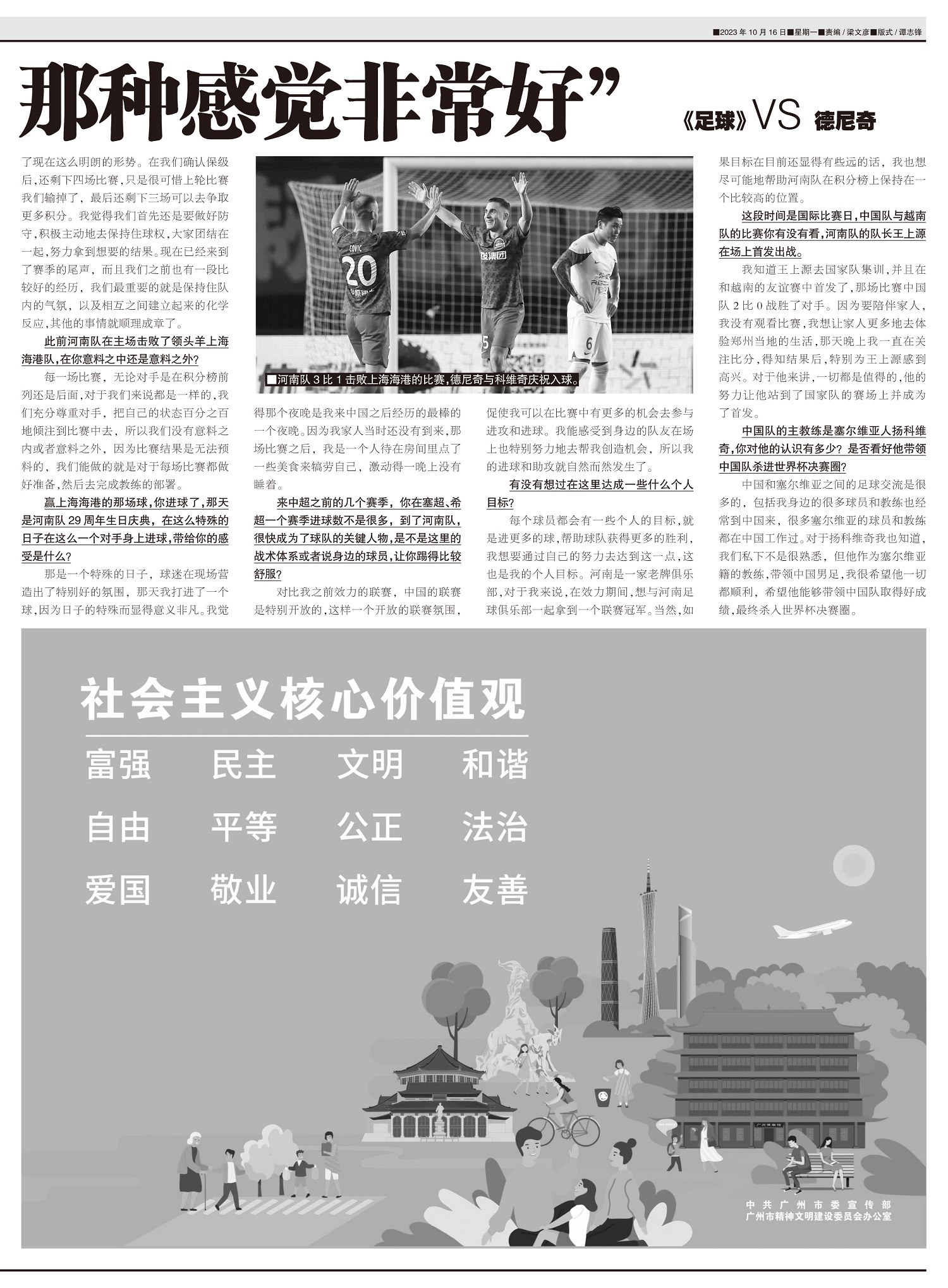 《足球》VS 德尼奇 “听到球迷喊新航体之王,那种感觉非常好”