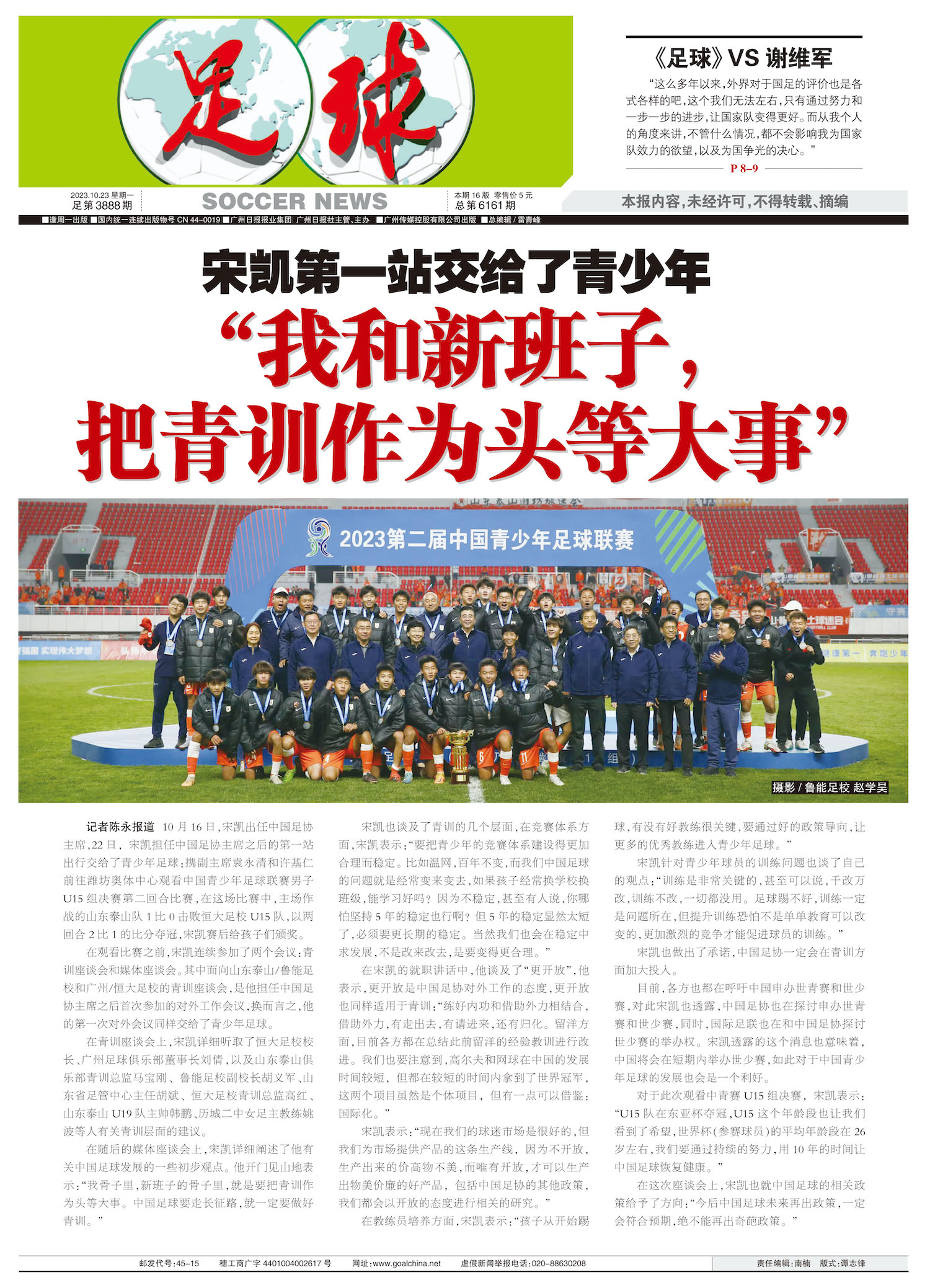 10月16日,宋凯出任中国足协主席,22日,宋凯担任中国足协主席之后的第一站出行交给了青少年足球:携...