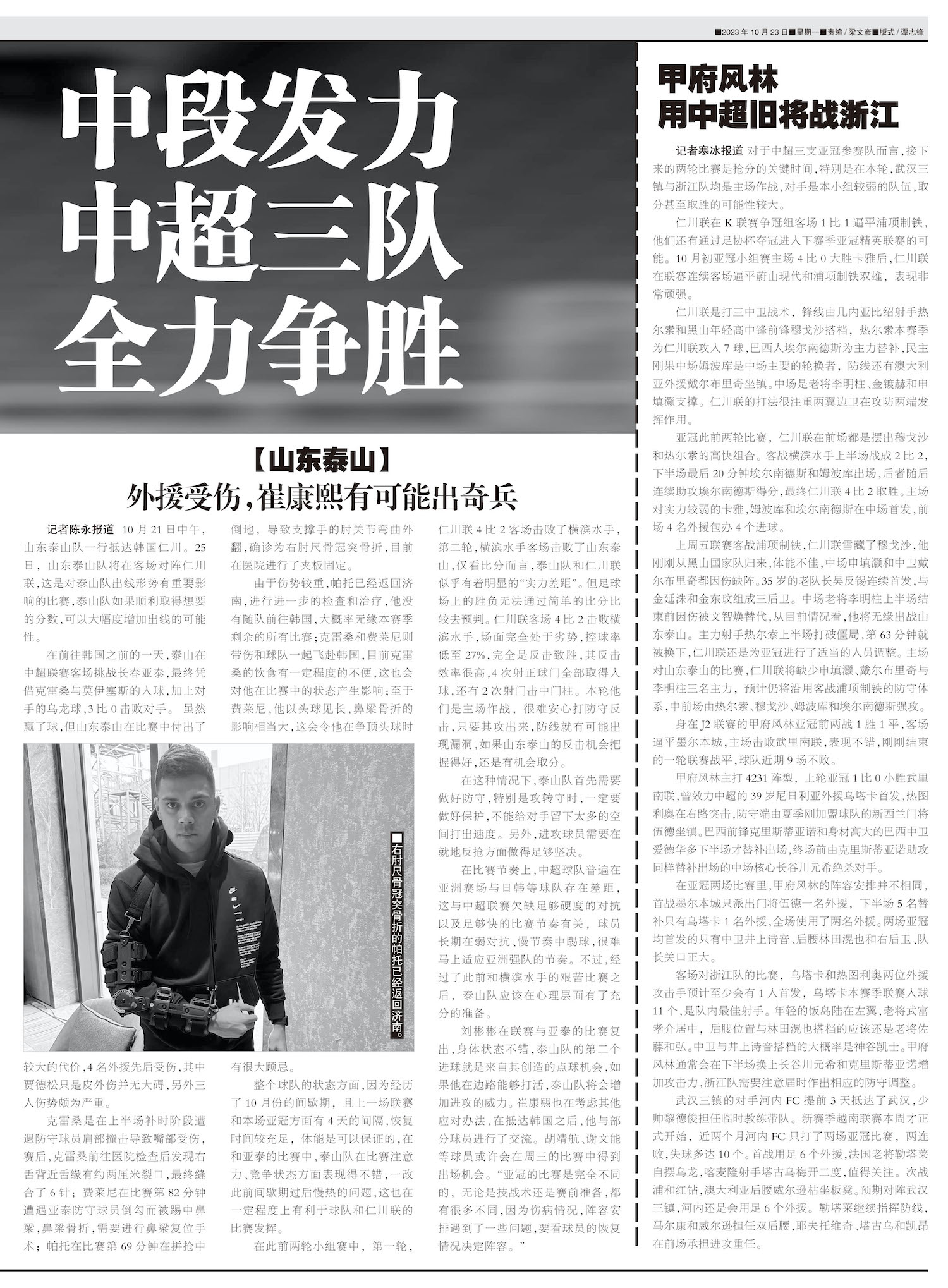 【山东泰山】 外援受伤,崔康熙有可能出奇兵