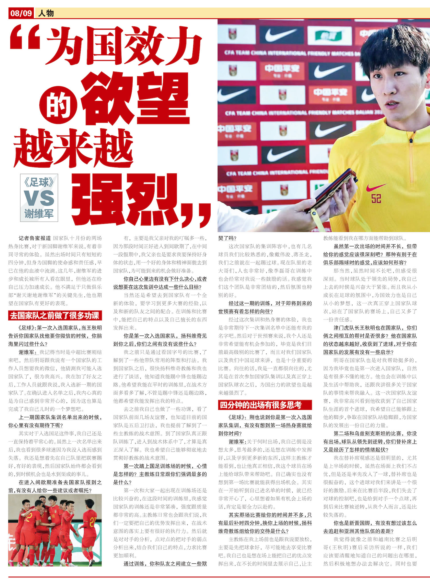 《足球》VS 谢维军 “为国效力的欲望越来越强烈”