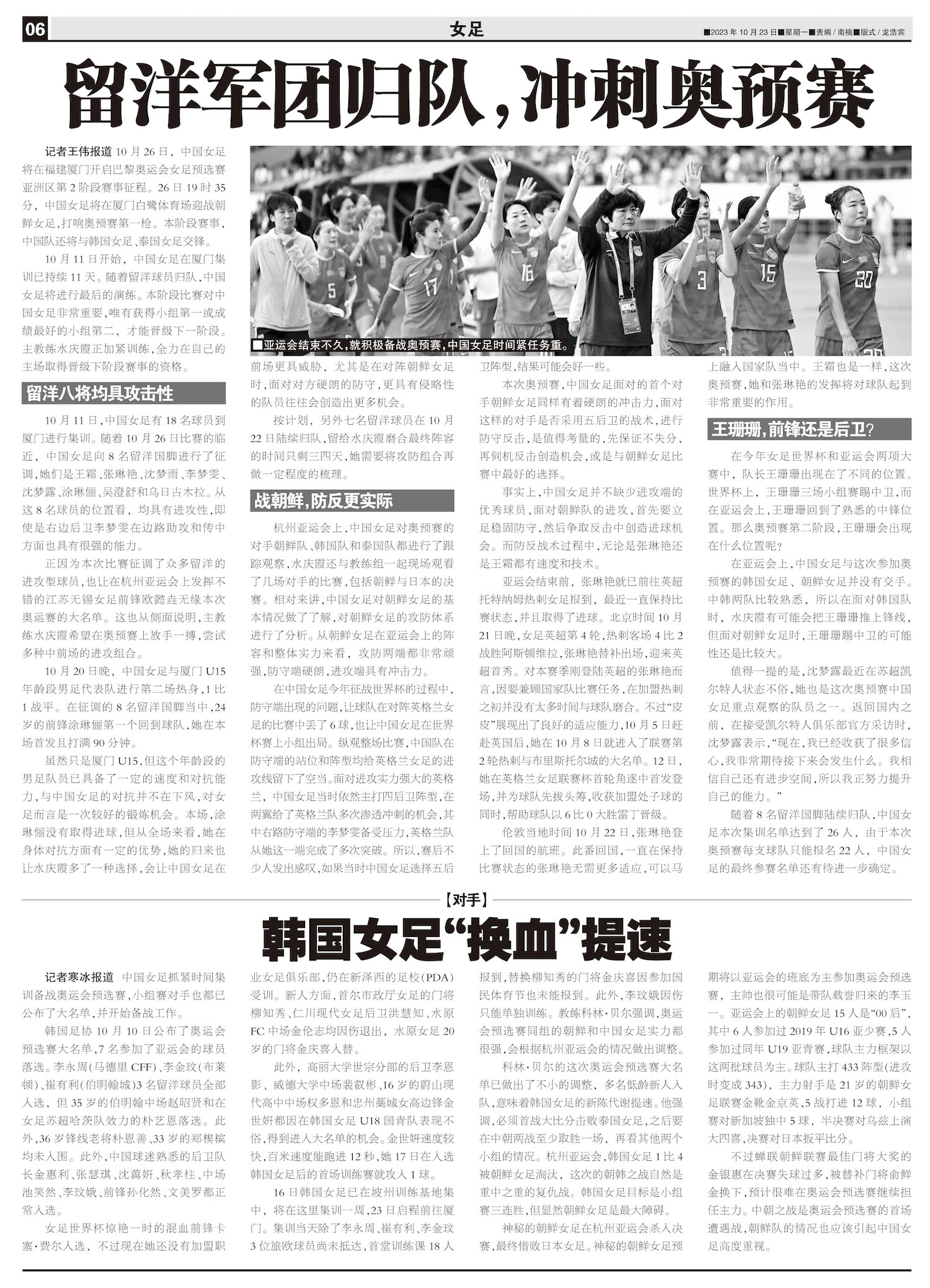 10月26日,中国女足将在福建厦门开启巴黎奥运会女足预选赛亚洲区第2阶段赛事征程。26日19时35分...