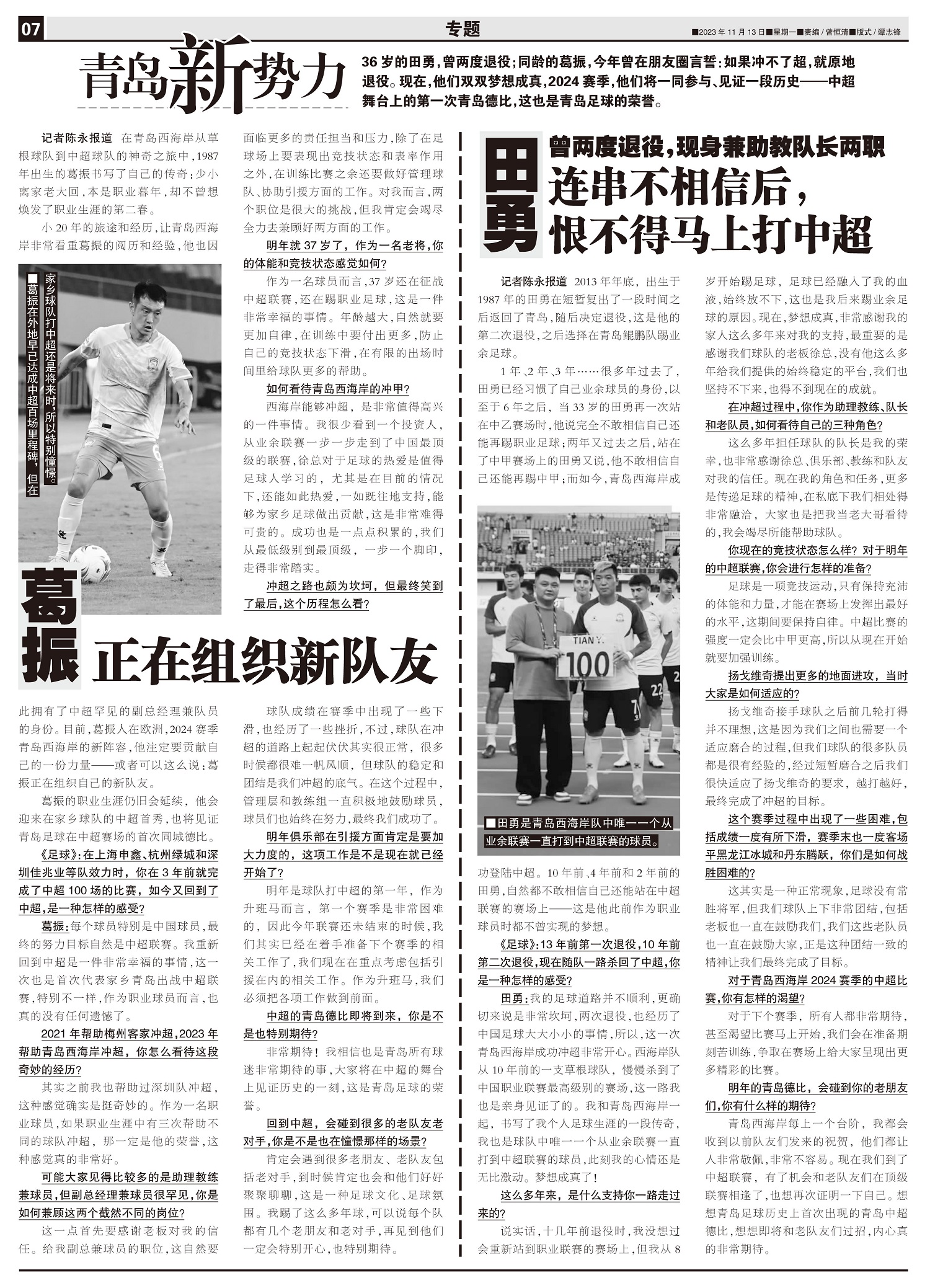 青岛新势力36岁的田勇,曾两度退役;同龄的葛振,今年曾在朋友圈言誓:如果冲不了超,就原地退役。现在,...