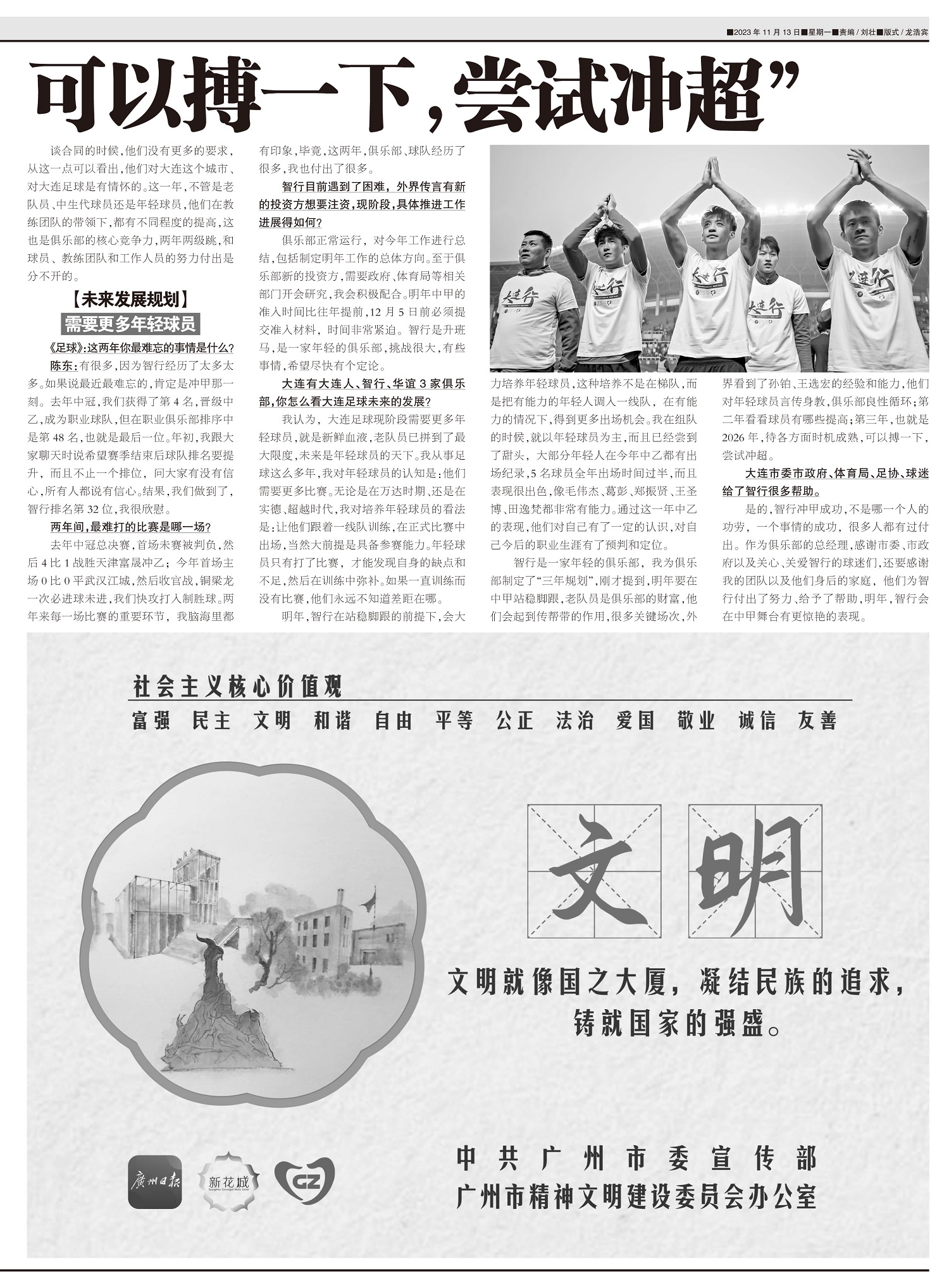 《足球》VS陈东 “待各方面时机成熟,可以搏一下,尝试冲超”