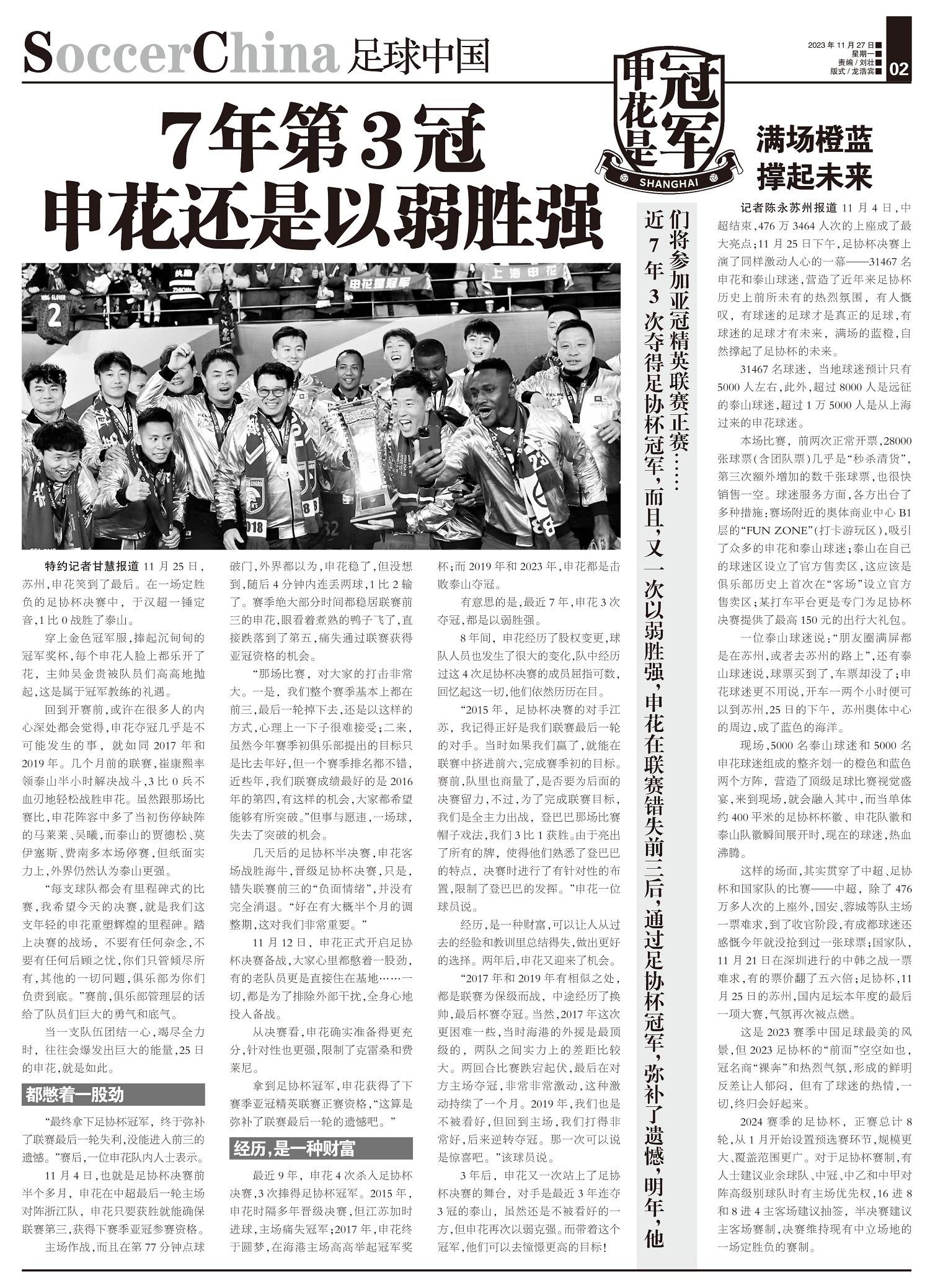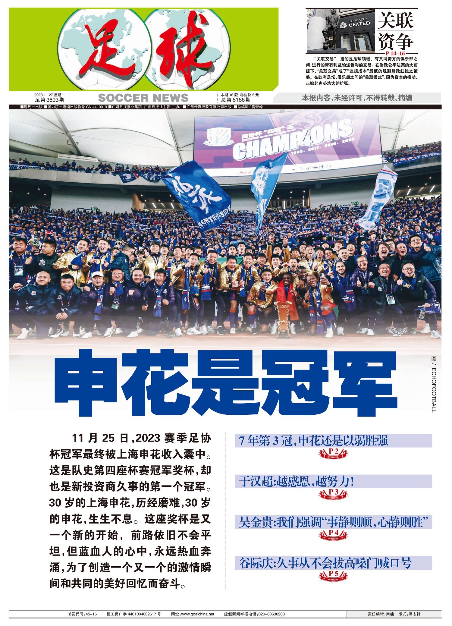 11月25日,2023赛季足协杯冠军最终被上海申花收入囊中。这是队史第四座杯赛冠军奖杯,却也是新投资...