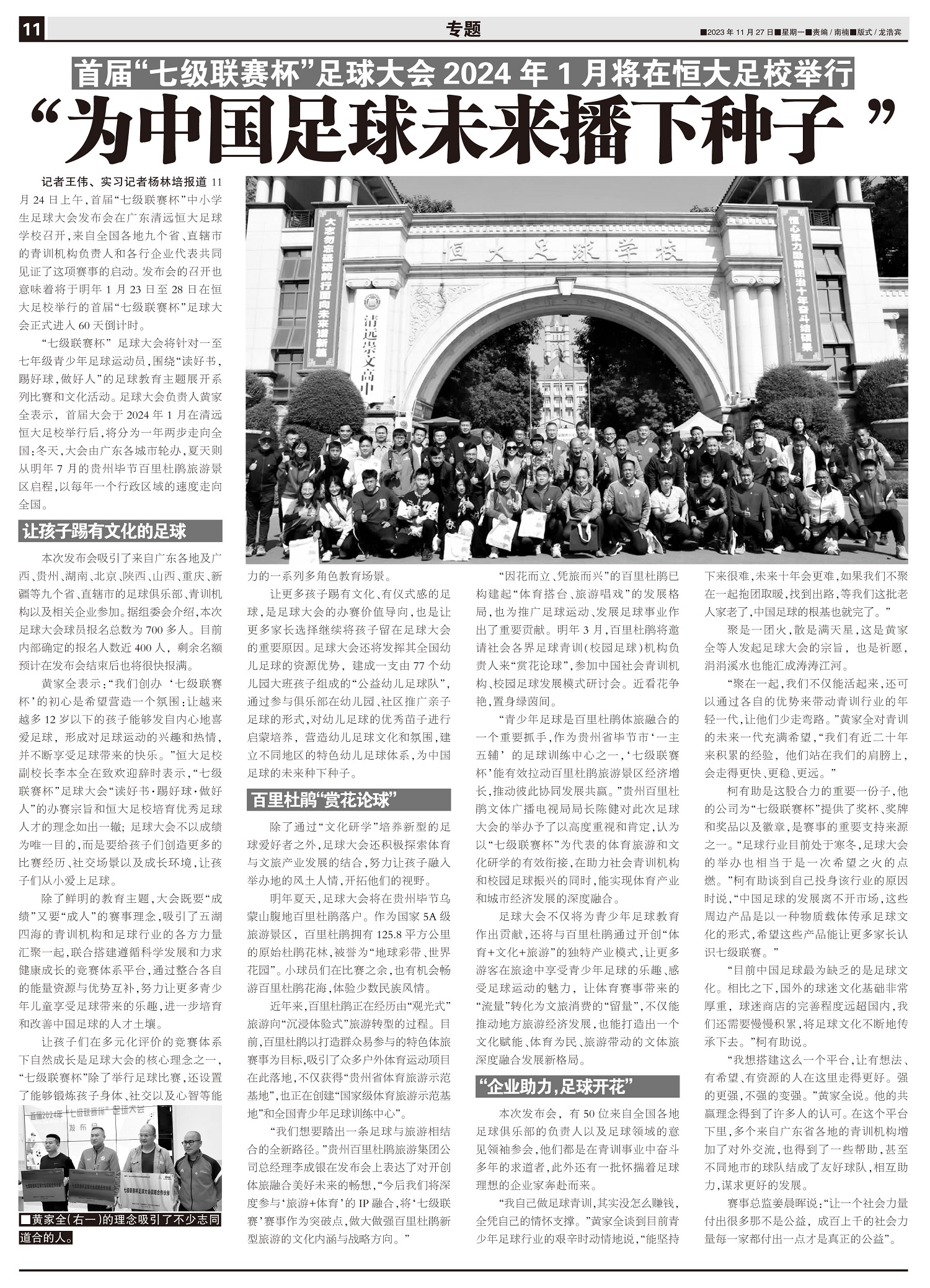 11月24日上午,首届“七级联赛杯”中小学生足球大会发布会在广东清远恒大足球学校召开,来自全国各地九...