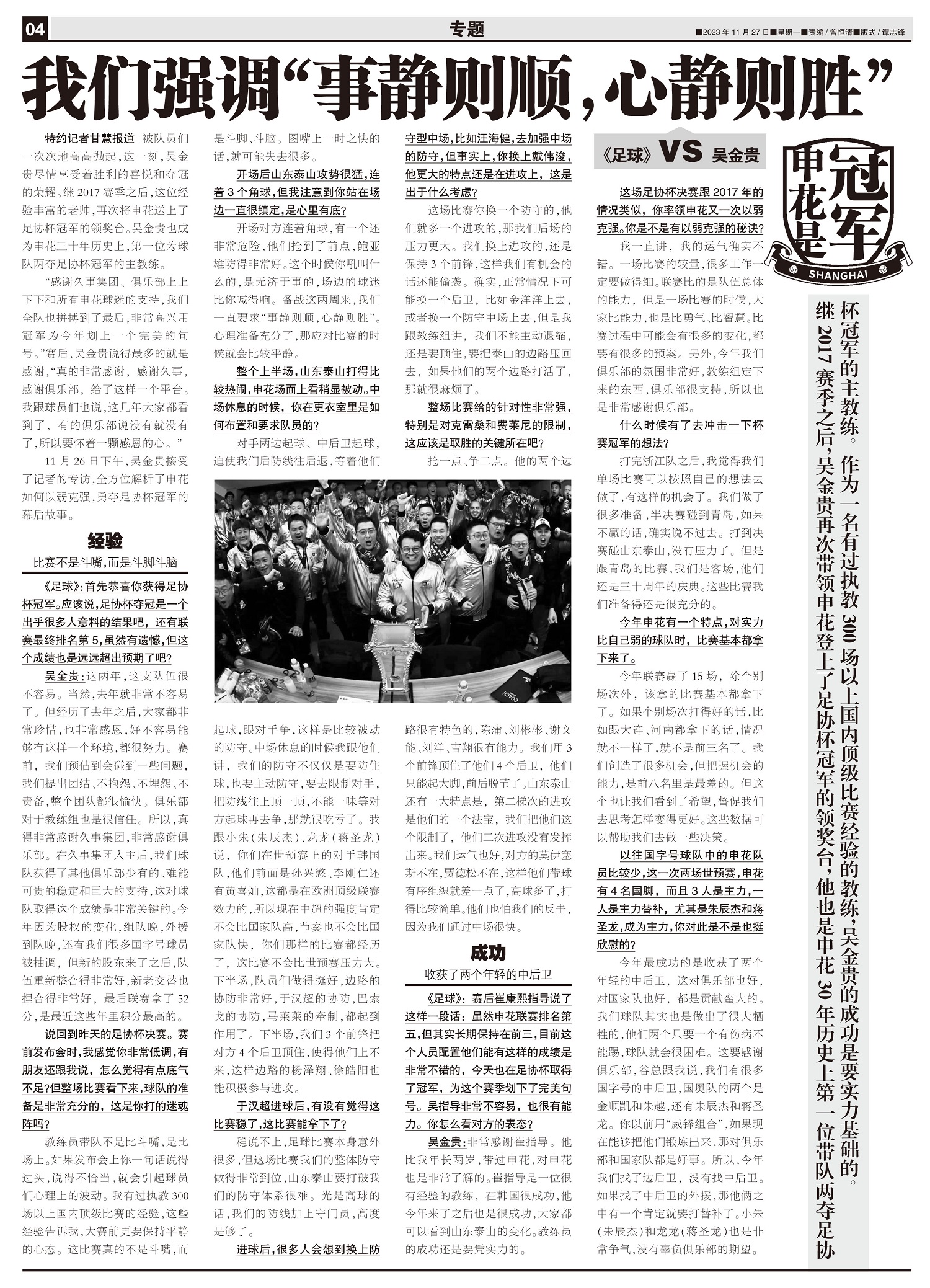 《足球》VS吴金贵 我们强调“事静则顺,心静则胜”