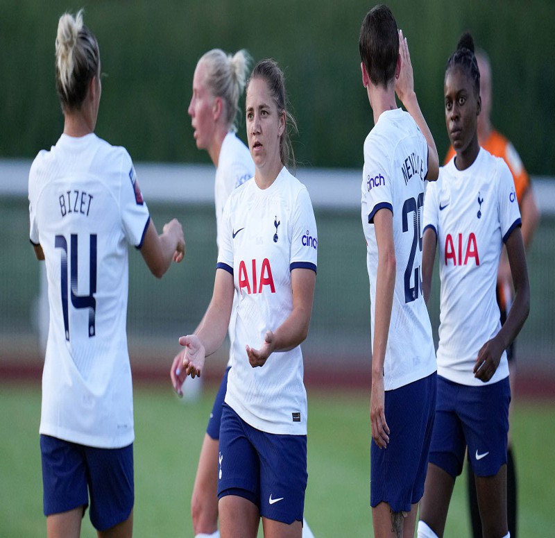 成立于1985年的热刺女足目前并非英格兰女足顶级劲旅,2019/20赛季以来,最好名次只是2021/22赛季的第5名,其余3个赛季在12支球队的联赛中都处于下半区,上赛季排名最低(第9名)。本赛季热刺女足一度6场不败,但11月底客场0比7惨败曼城女足。目前热刺女足在联赛中,8轮3胜3平2负积12分排名第6位,距离榜首的切尔西女足10分,领先第7名莱斯特城女足4分,暂时还能留在上半区。而在女足联赛杯中,热刺女足两连胜,小组内净胜球优势力压劲旅阿森纳女足排名榜首。