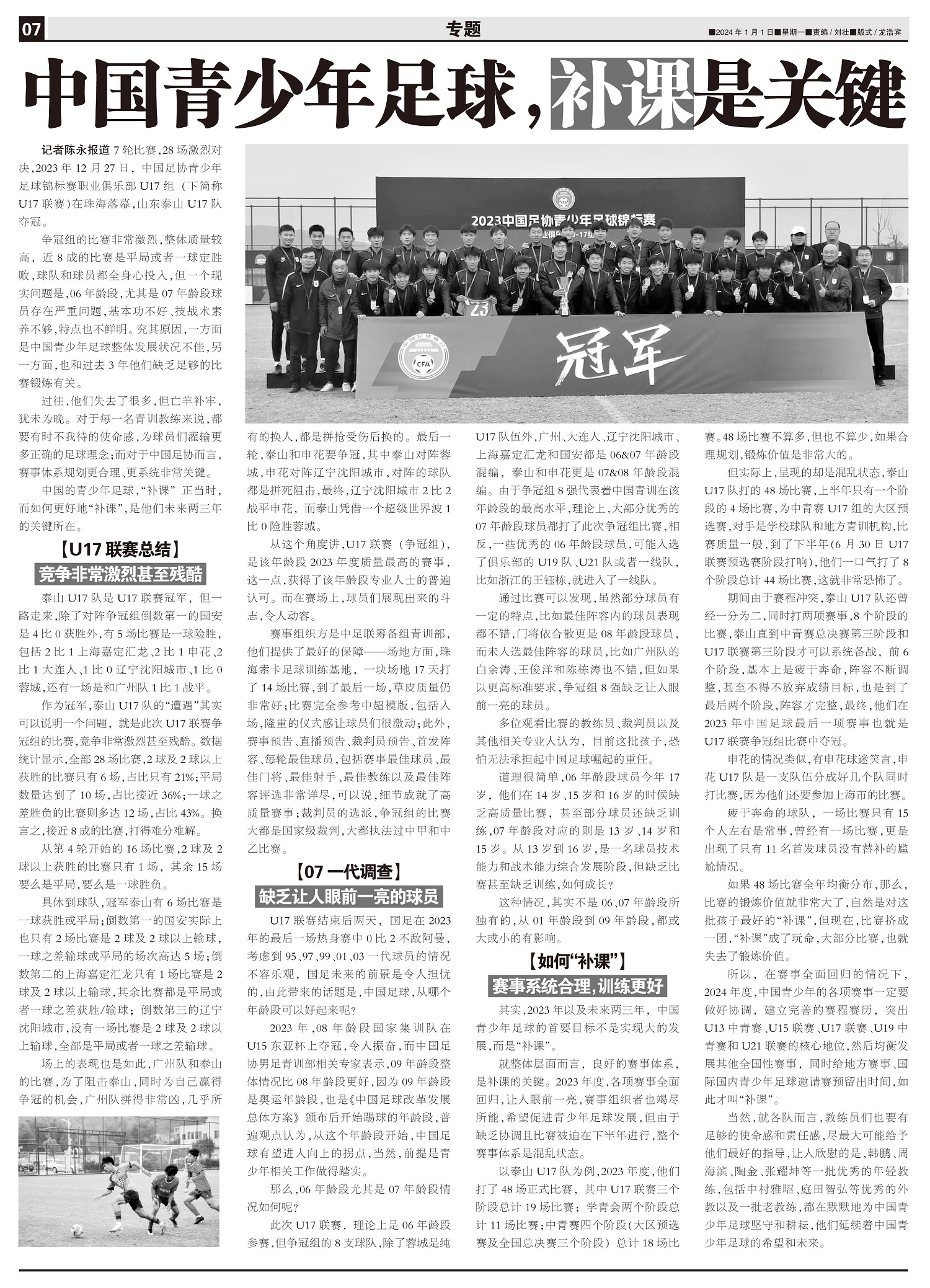 7轮比赛,28场激烈对决,2023年12月27日,中国足协青少年足球锦标赛职业俱乐部U17组(下简称...