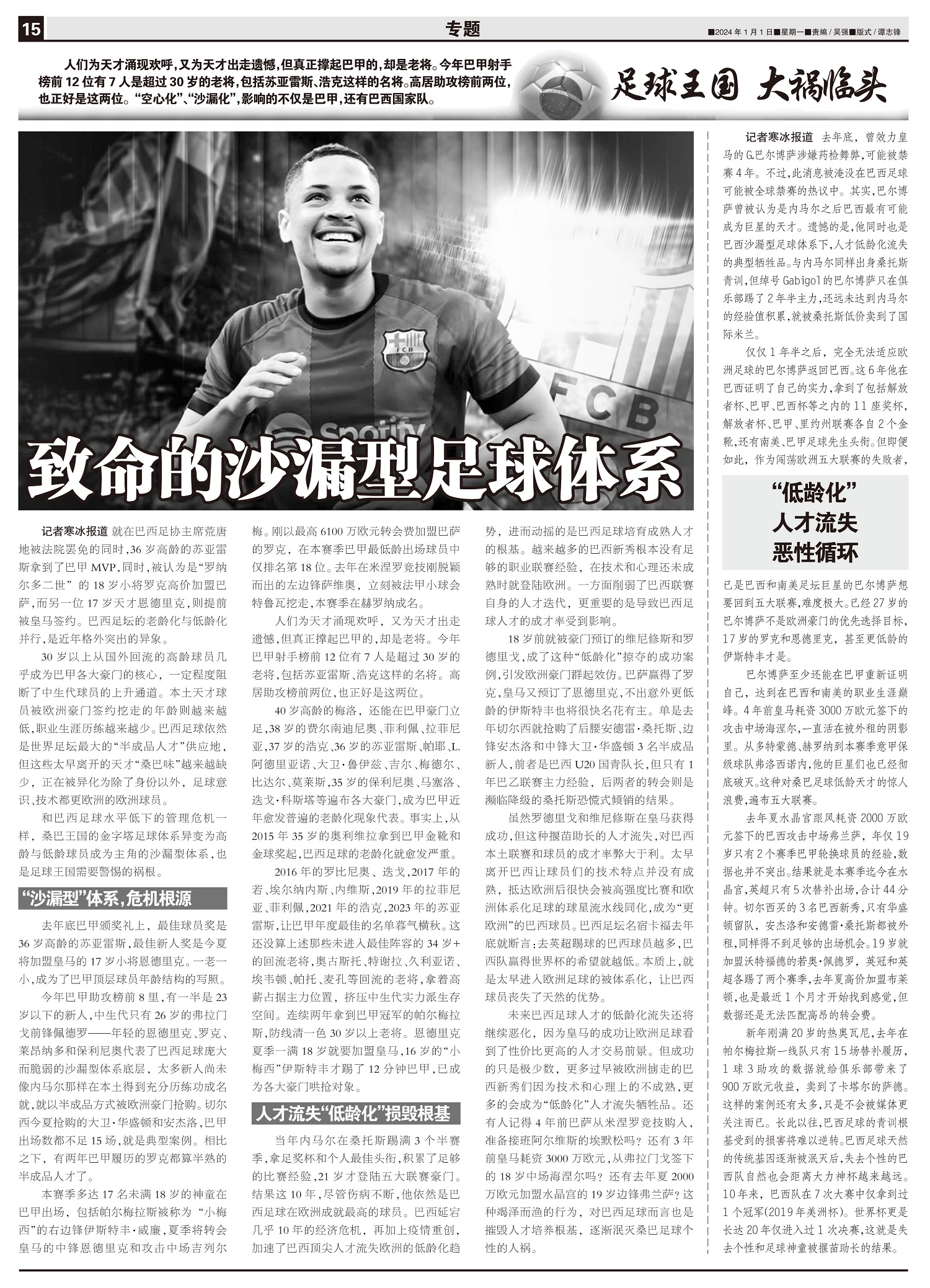 去年底,曾效力皇马的G.巴尔博萨涉嫌药检舞弊,可能被禁赛4年。不过,此消息被淹没在巴西足球可能被全球...