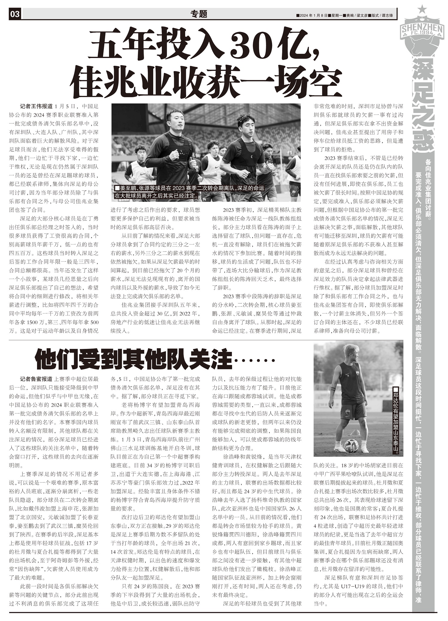 已经降级的深圳队,不在第一批完成清欠名单中,消息显示,虽然上交了准入材料,但基本等于“交白卷”。1月...