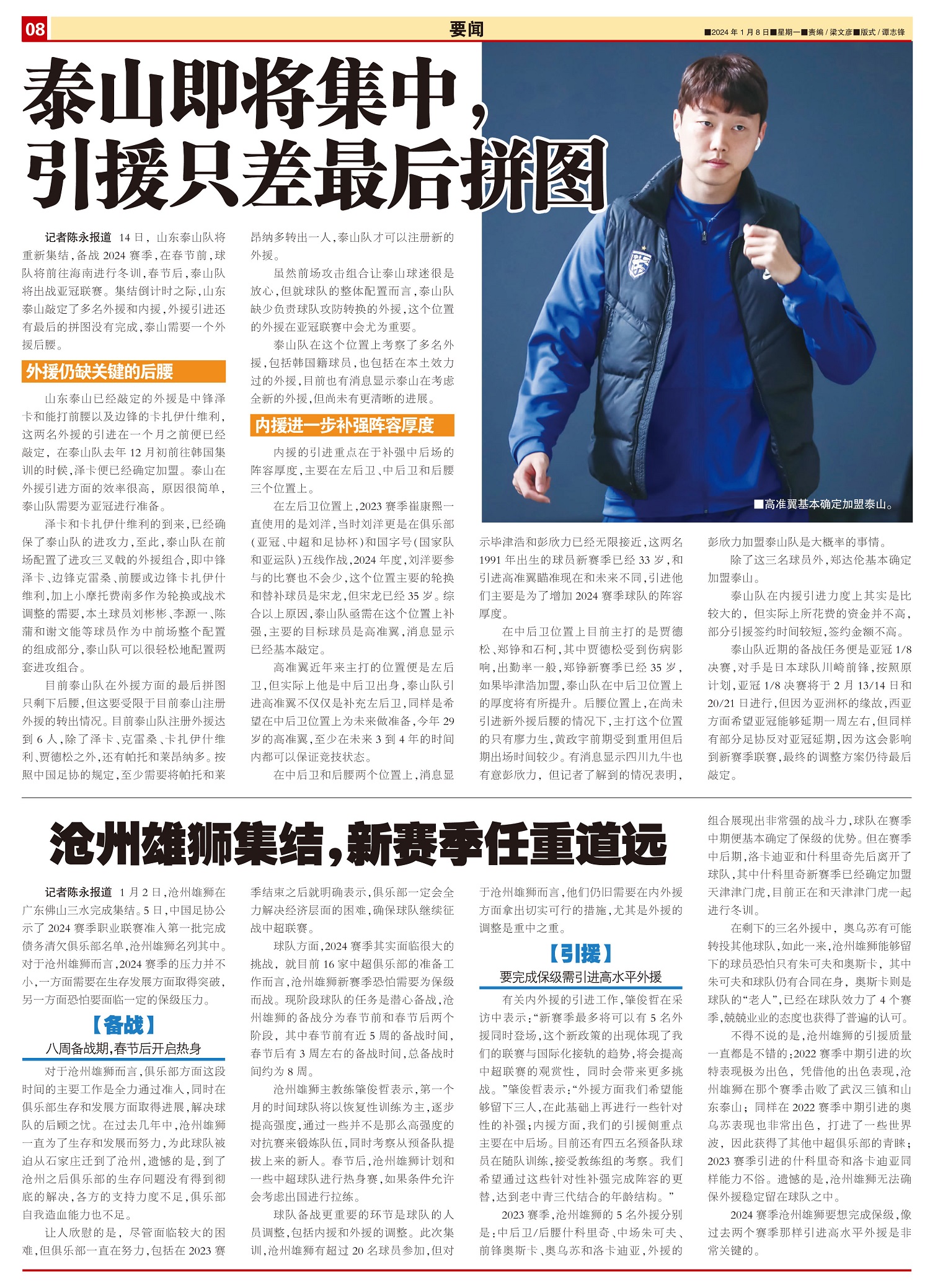 14日,山东泰山队将重新集结,备战2024赛季,在春节前,球队将前往海南进行冬训,春节后,泰山队将出...