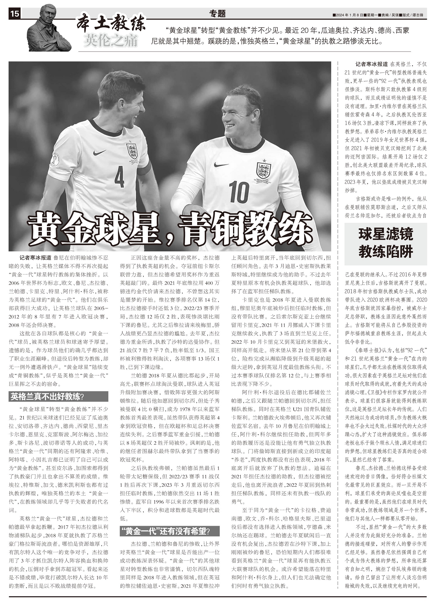 在英格兰,不仅21世纪的“黄金一代”转型教练普遍失败,更早一些的“92一代”执教表现也很惨淡。斯科尔...