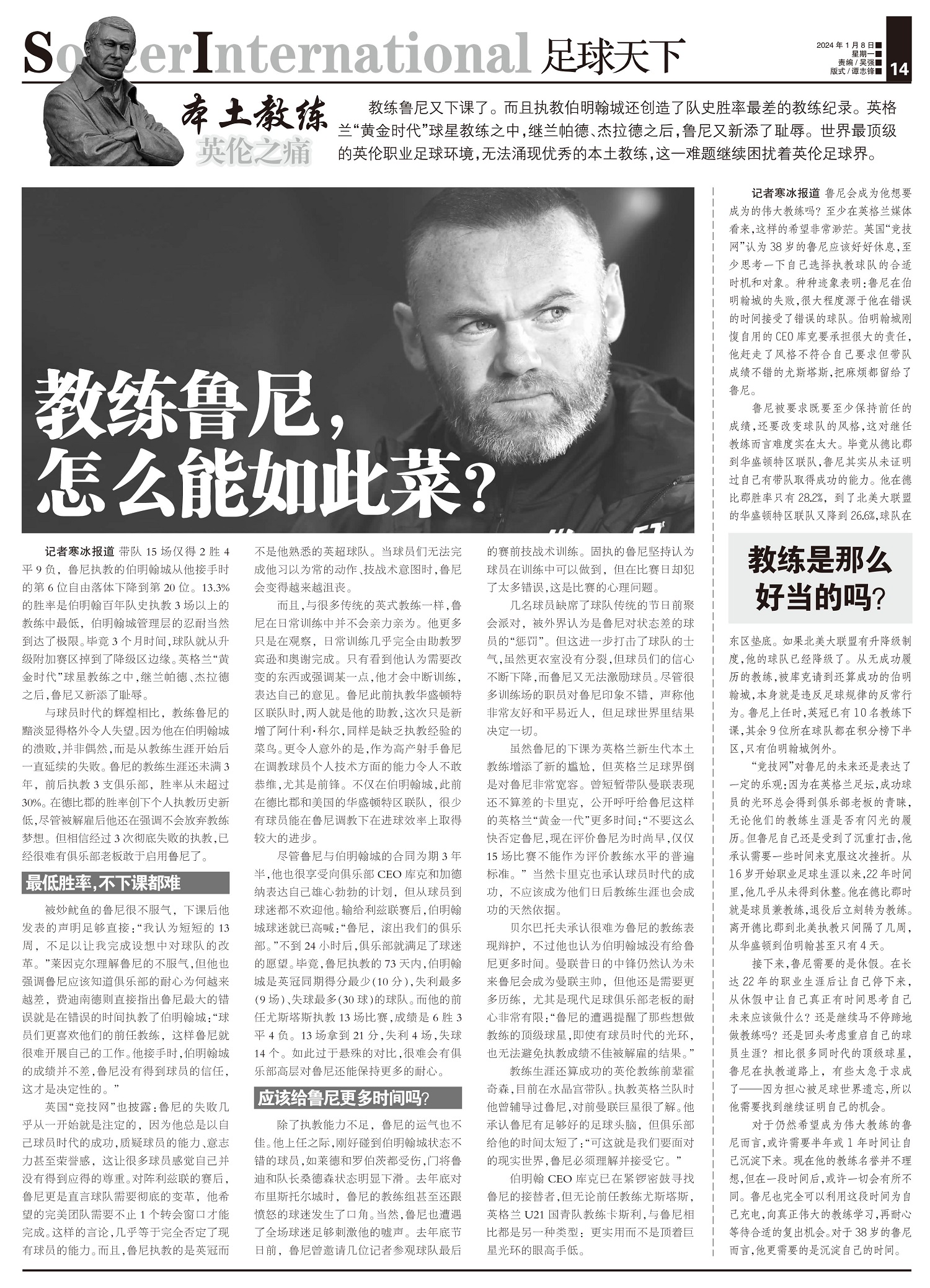 鲁尼会成为他想要成为的伟大教练吗?至少在英格兰媒体看来,这样的希望非常渺茫。英国“竞技网”认为38岁...