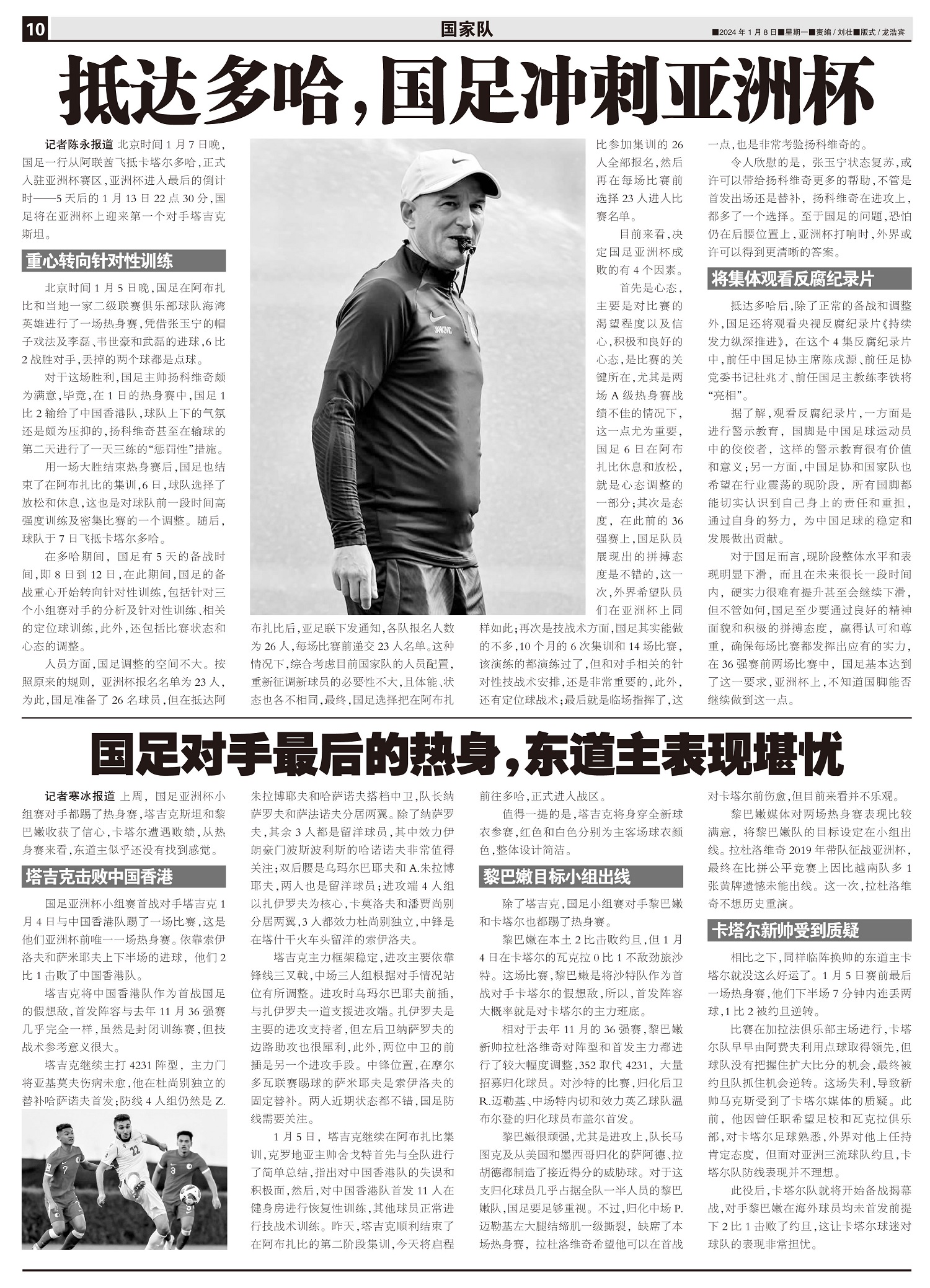 北京时间1月7日晚,国足一行从阿联酋飞抵卡塔尔多哈,正式入驻亚洲杯赛区,亚洲杯进入最后的倒计时——5...