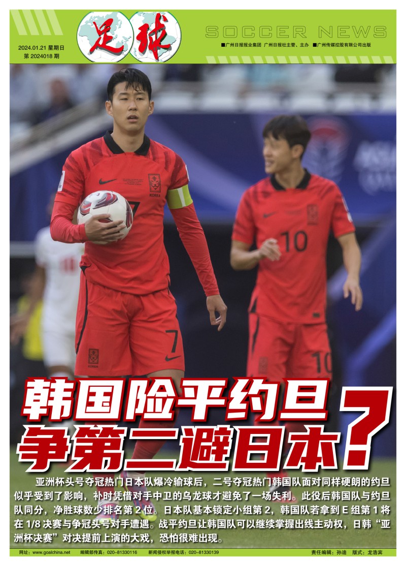 韩国队没输给世界排名低于自己64位的约旦队,但暴露出的问题值得克林斯曼及时总结。此役后韩国队与约旦队同分,净胜球数少排名第2位。日本队基本锁定小组第2,韩国队若拿到E组第1将在1/8决赛与争冠头号对手遭遇。战平约旦让韩国队可以继续掌握出线主动权,日韩“亚洲杯决赛”对决提前上演的大戏,恐怕很难出现。