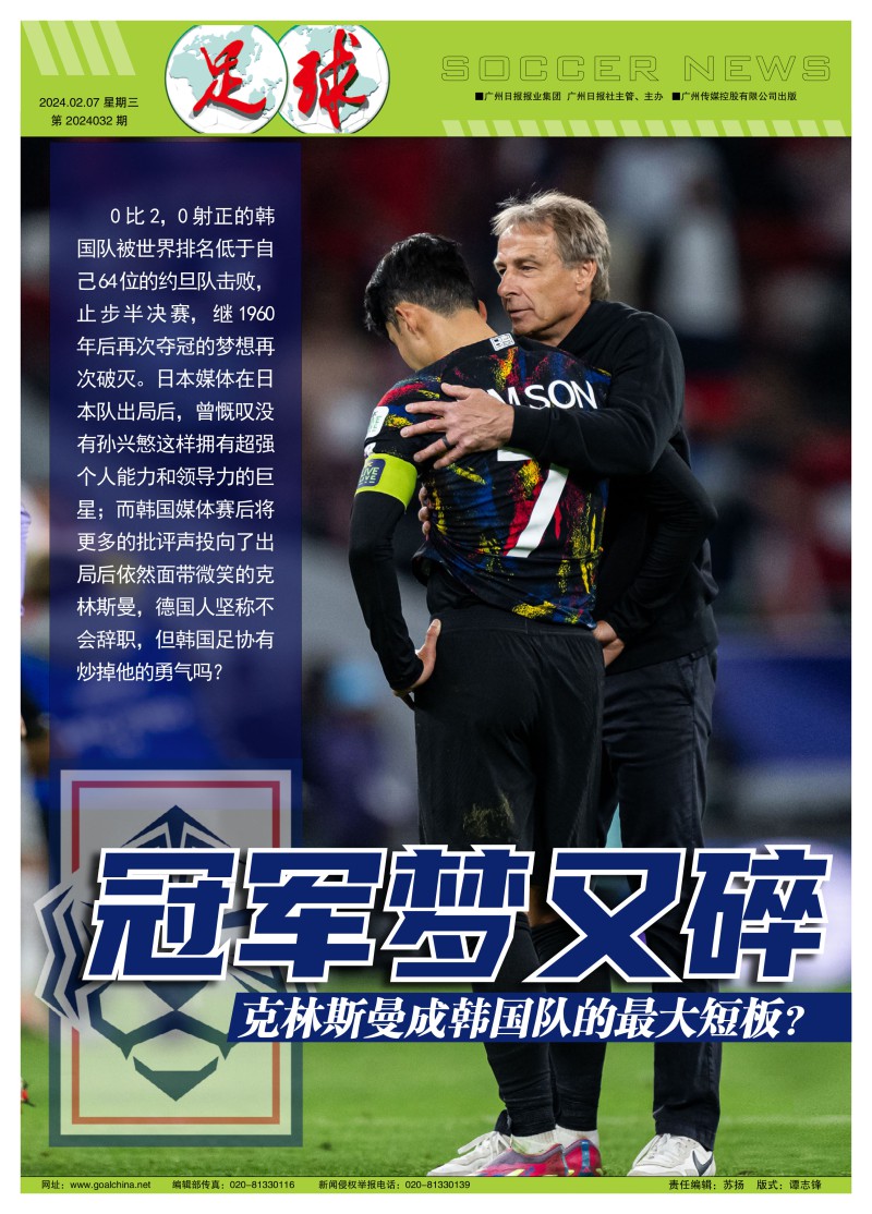 日本媒体在日本队出局后,曾慨叹没有孙兴慜这样拥有超强个人能力和领导力的巨星;而韩国媒体赛后将更多的批评声投向了出局后依然面带微笑的克林斯曼:亚洲杯已证明德国名宿的执教能力,才是这支韩国队最大的短板。克林斯曼坚称不会辞职,但韩国足协有炒掉他的勇气吗?