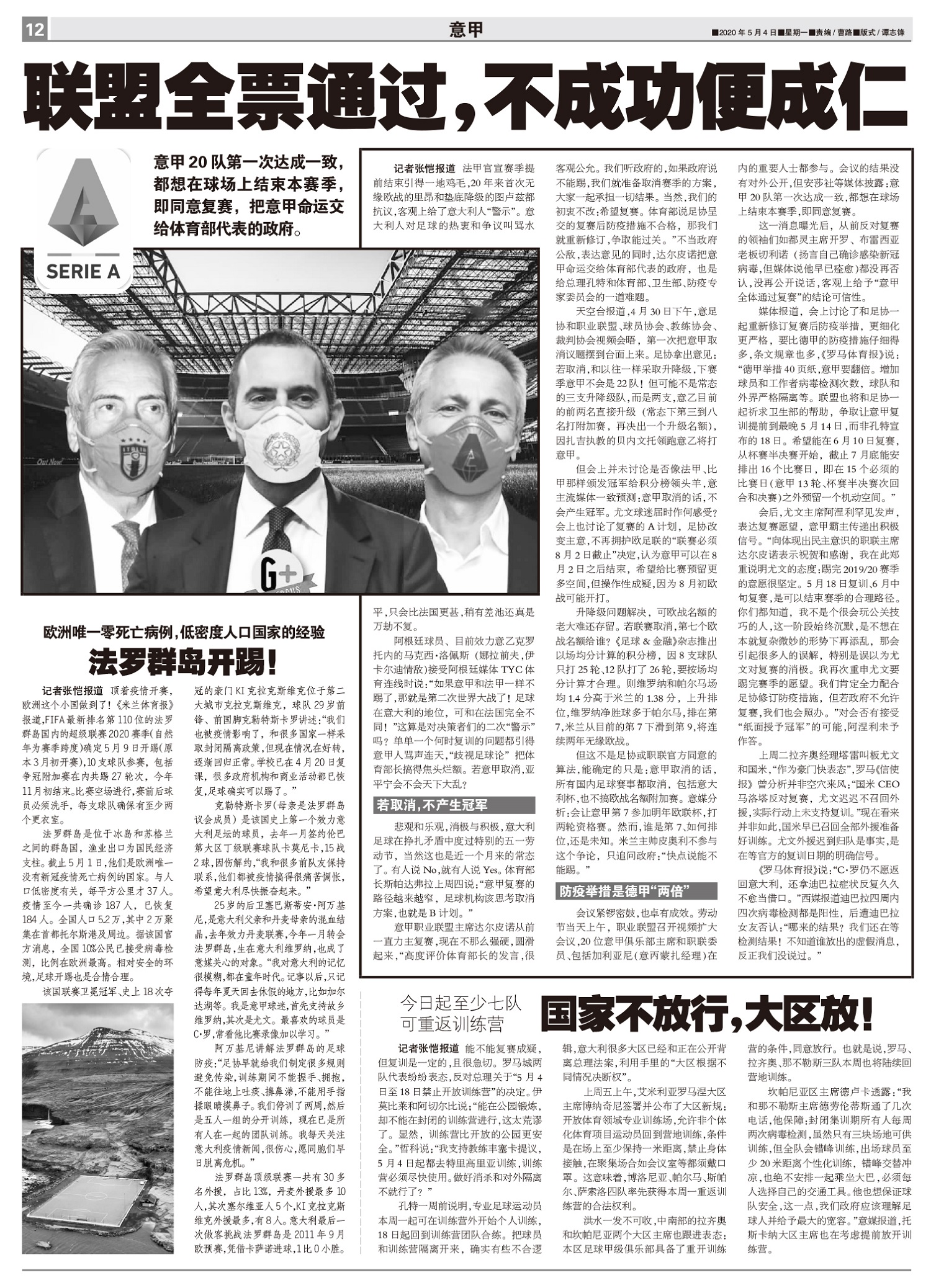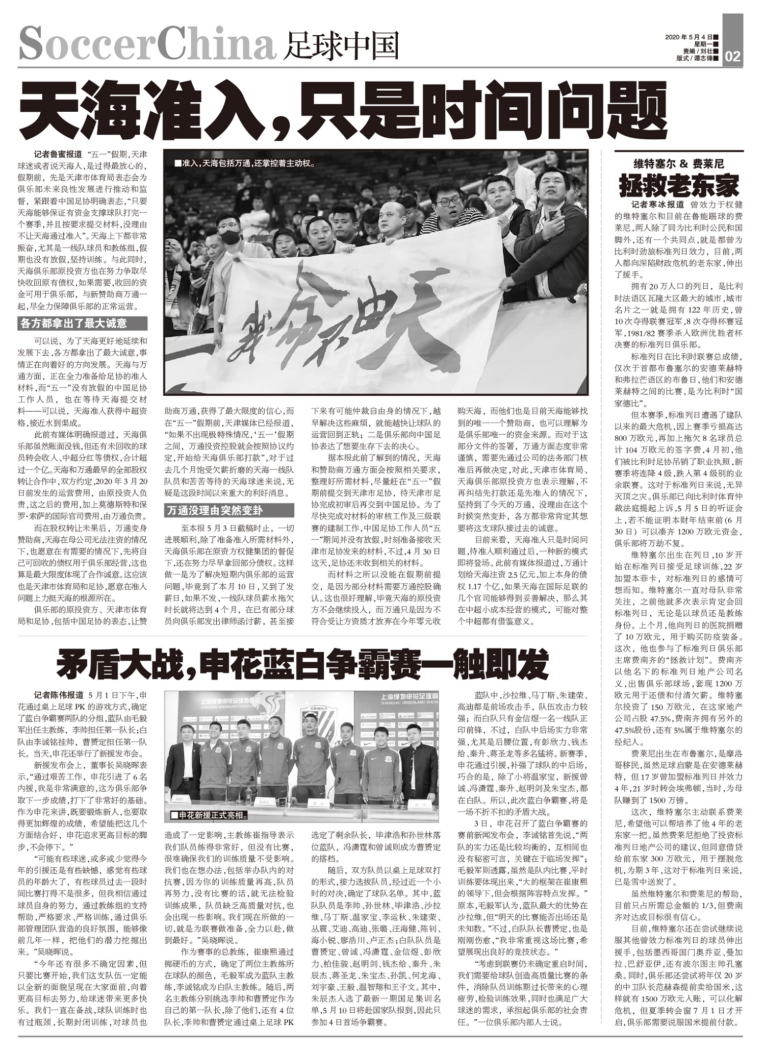【封面报道】复训允许,复赛未知,四大联赛谋求重启;【足球中国】天海准入,只是时间问题;【要闻】中超U23打中乙只降不升,预备队联赛取消设U23联赛;【足球天下】5·9重启失败,5·16希望不灭;