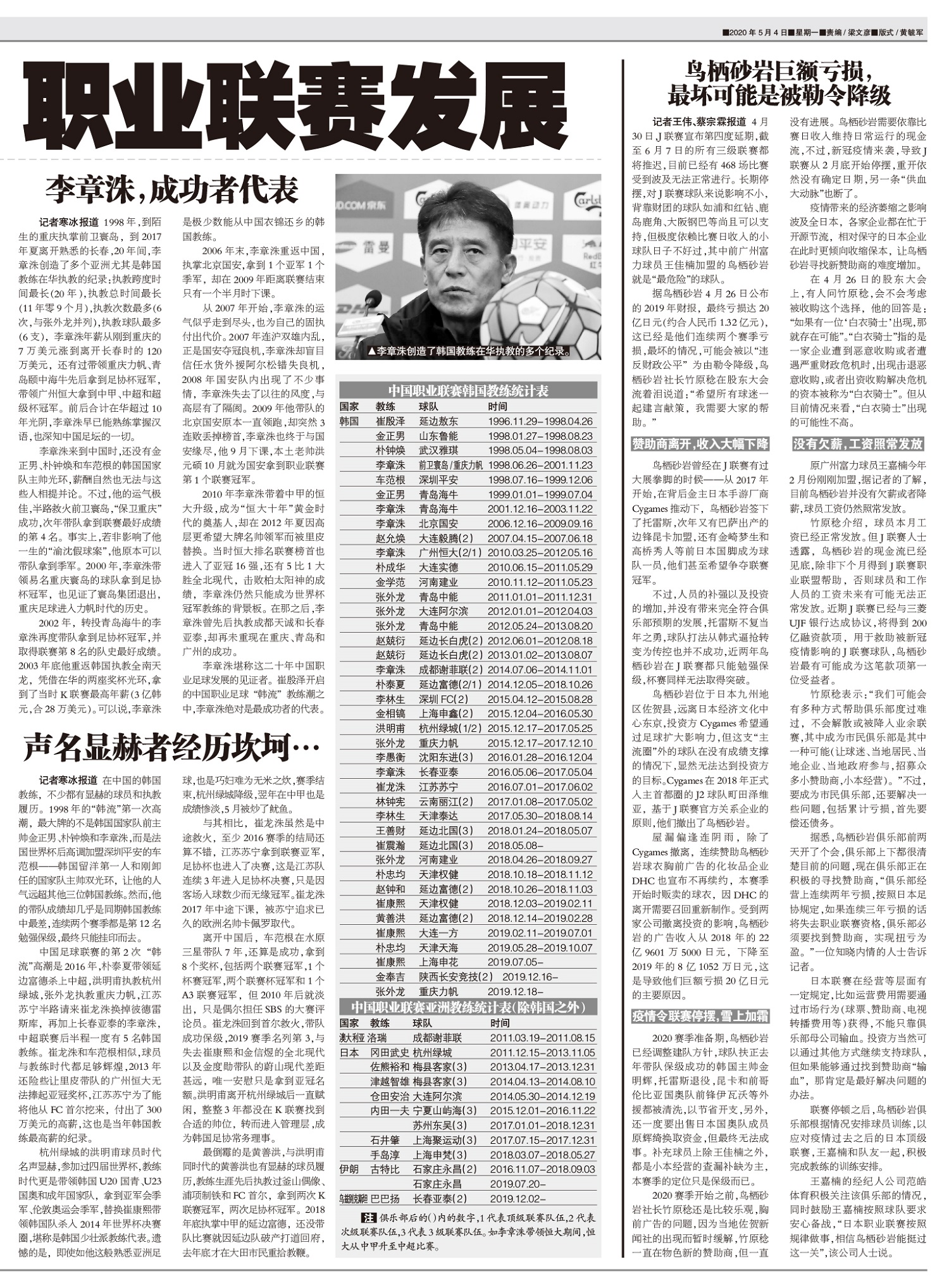 韩国教练在华执教历史,据不完全统计有24位韩国教练合计40次执教中国3个级别联赛的球队,其中李章洙和...