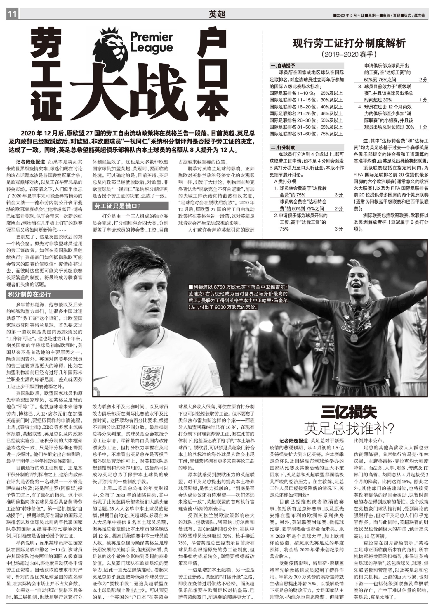 2020年12月后,原欧盟27国的劳工自由流动政策将在英格兰告一段落。目前英超、英足总及内政部已经就...