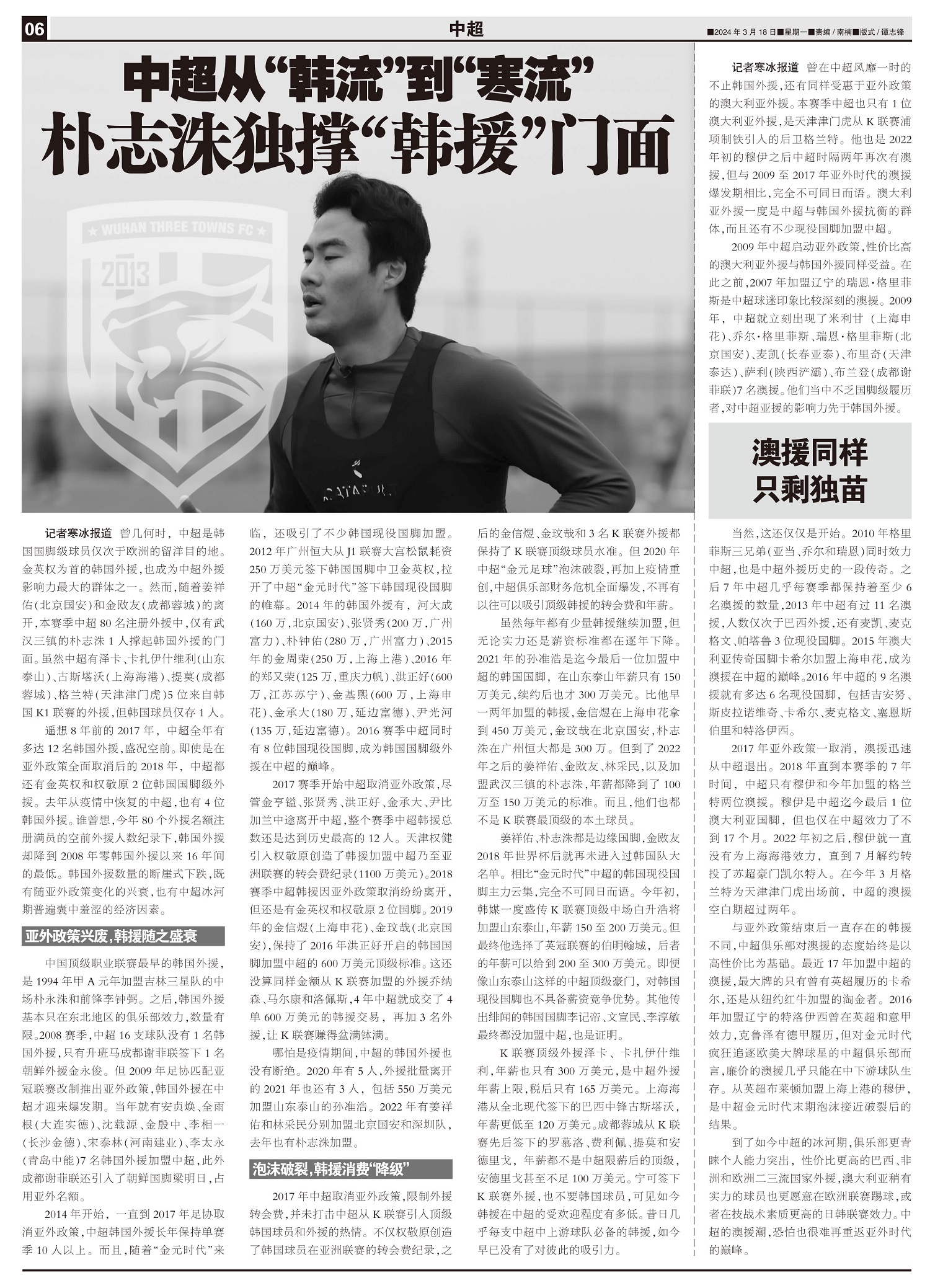 中超从“韩流”到“寒流” 朴志洙独撑“韩援”门面
