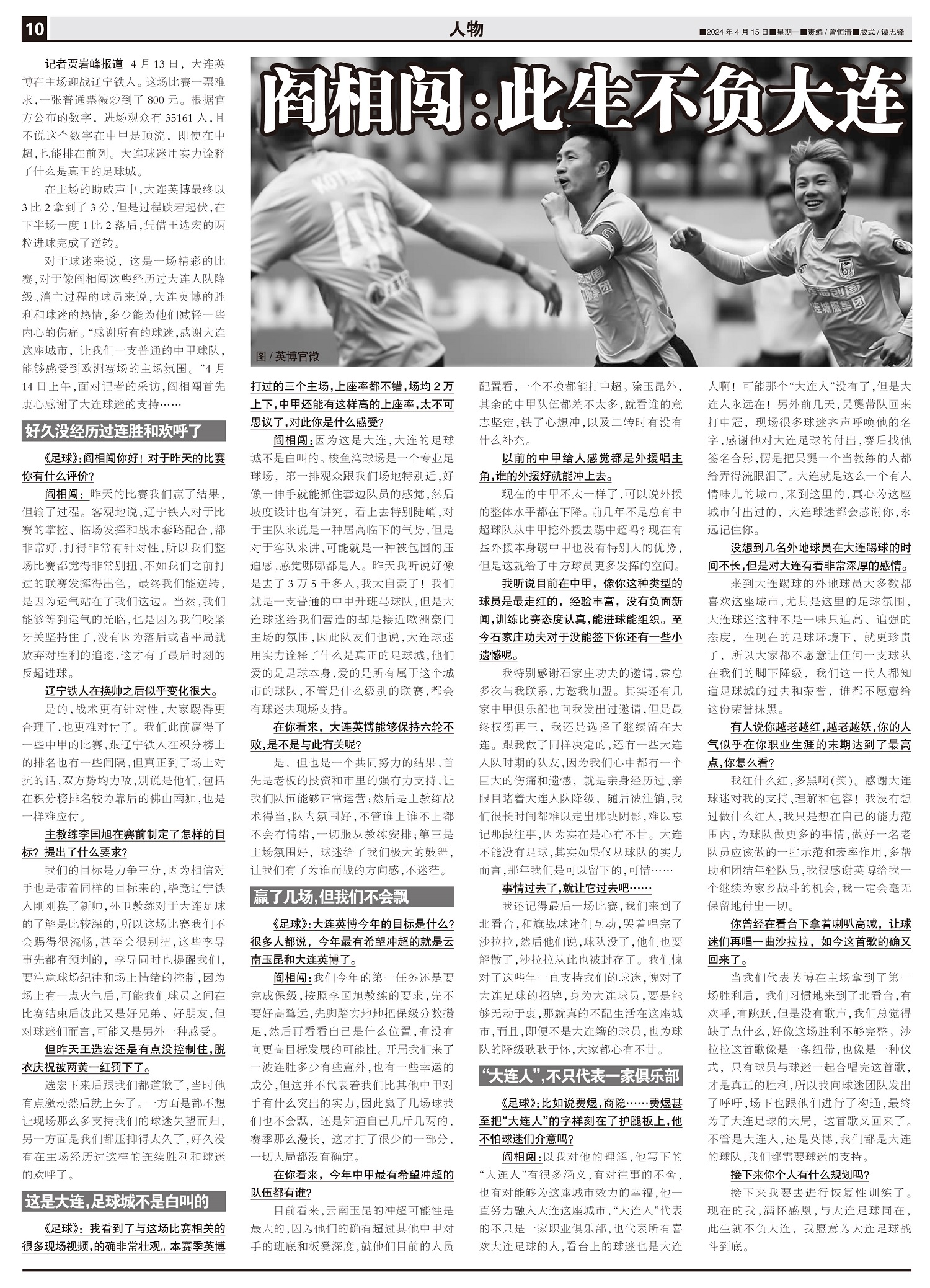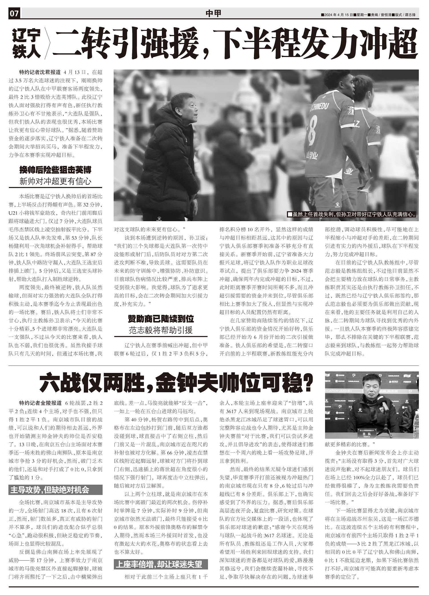 4月13日,在超过3.5万名大连球迷的注视下,刚刚换帅的辽宁铁人队在中甲联赛客场两度领先,最终2比3...