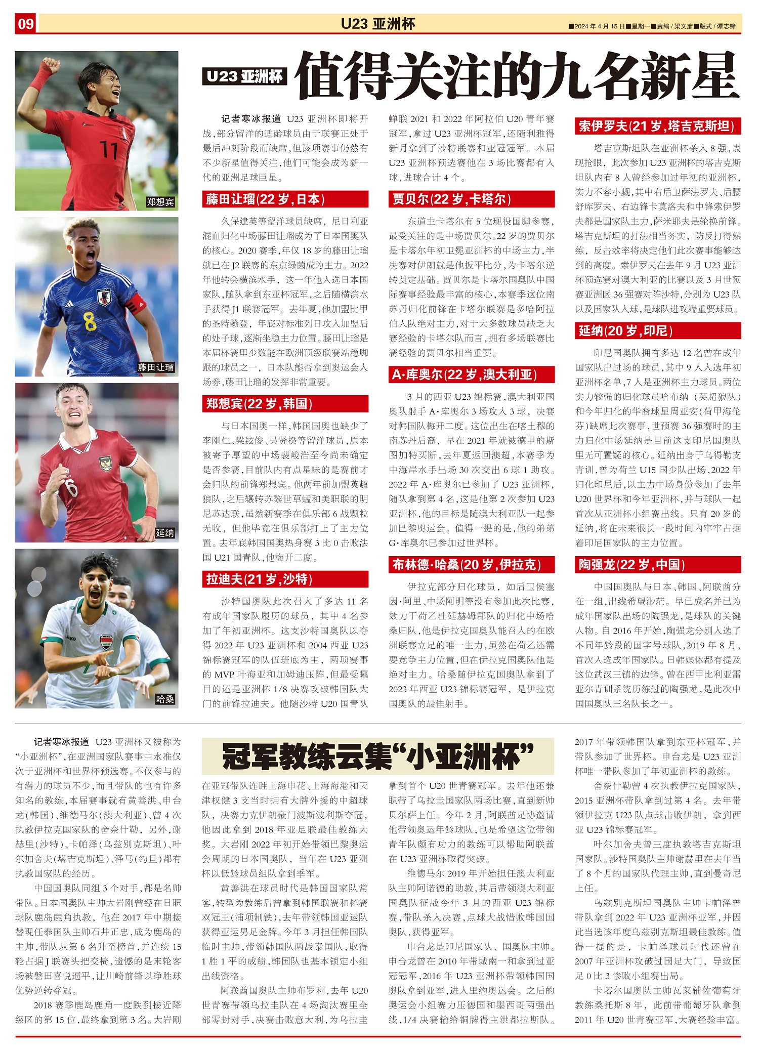 U23亚洲杯即将开战,部分留洋的适龄球员由于联赛正处于最后冲刺阶段而缺席,但该项赛事仍然有不少新星值...
