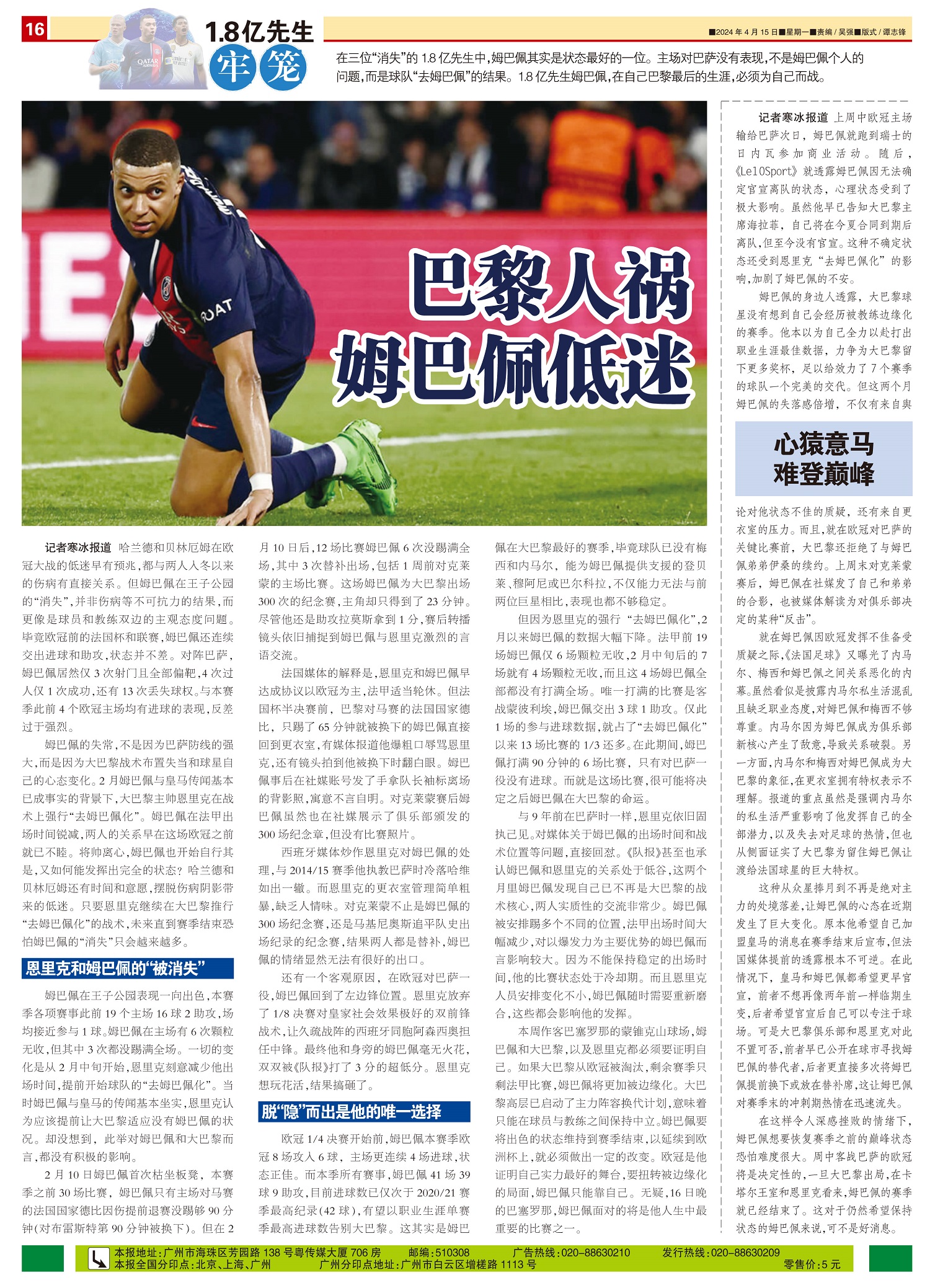 1.8亿先生牢笼在三位“消失”的1.8亿先生中,姆巴佩其实是状态最好的一位。主场对巴萨没有表现,不是...