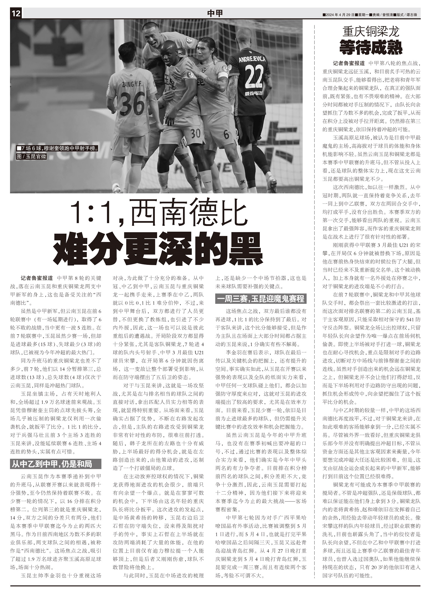 中甲第八轮的焦点战,重庆铜梁龙远征玉溪,和目前炙手可热的云南玉昆队交手。能够看得出,把老将和青年军合...