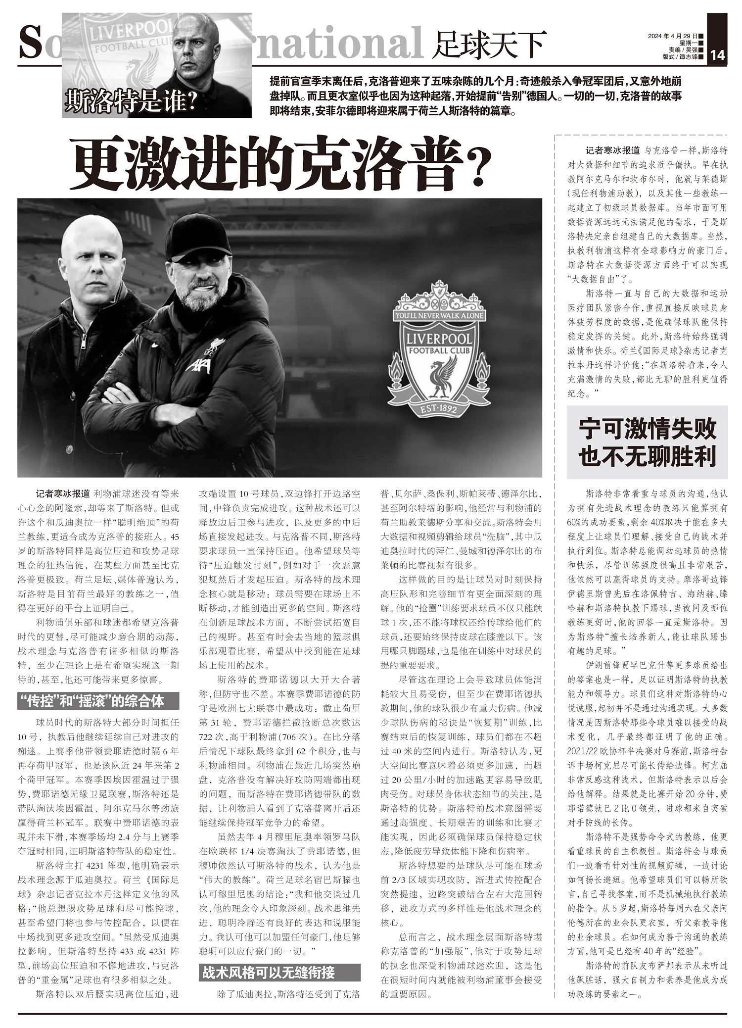 斯洛特是谁?提前官宣季末离任后,克洛普迎来了五味杂陈的几个月:奇迹般杀入争冠军团后,又意外地崩盘掉队...