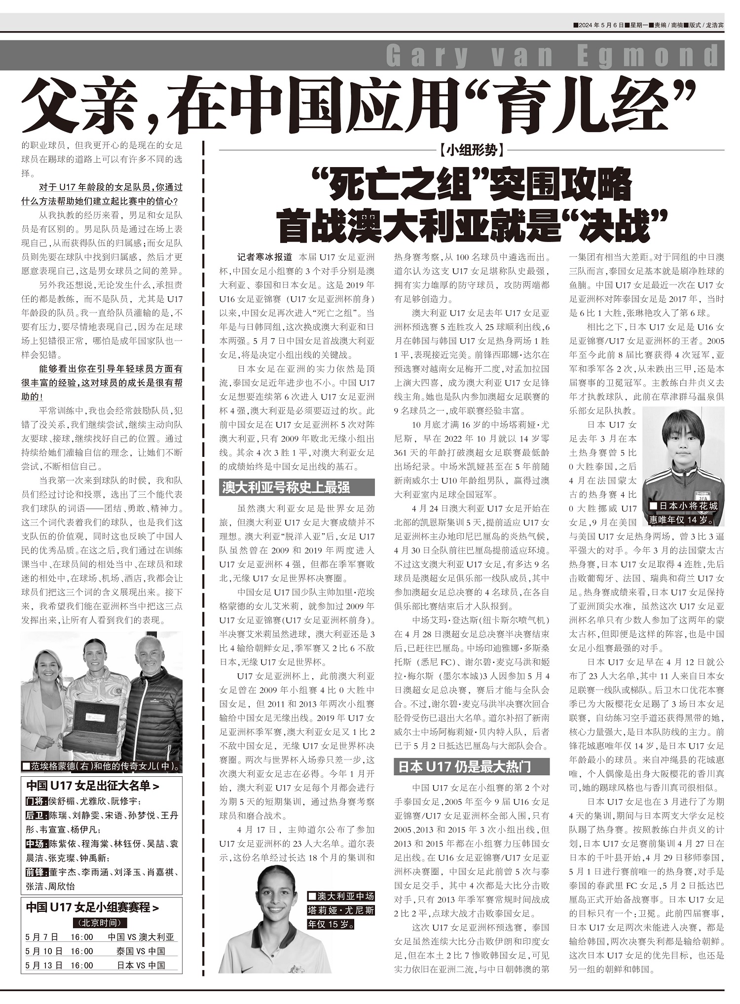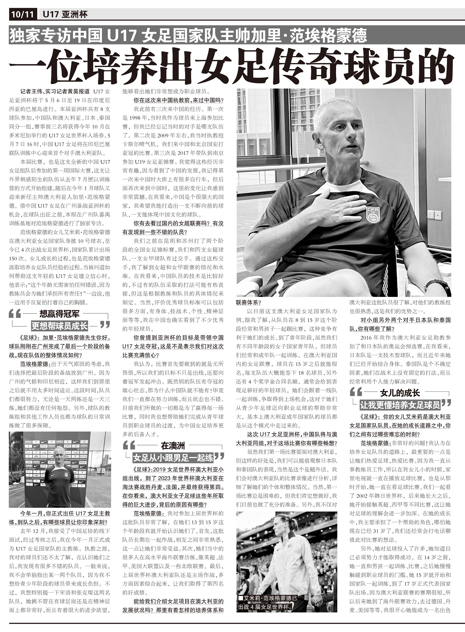 独家专访中国U17女足国家队主帅加里·范埃格蒙德 一位培养出女足传奇球员的父亲,在中国应用“育儿经”