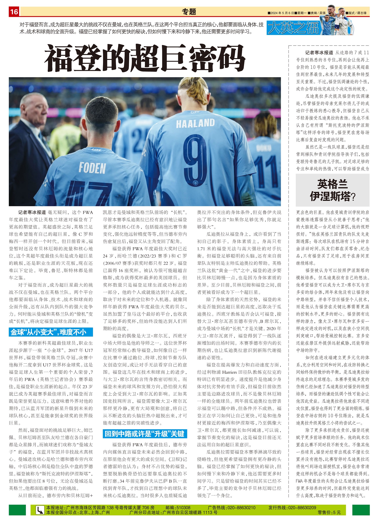 大英之福对于福登而言,成为超巨星最大的挑战不仅在曼城,也在英格兰队。在这两个平台担当真正的核心,他都...
