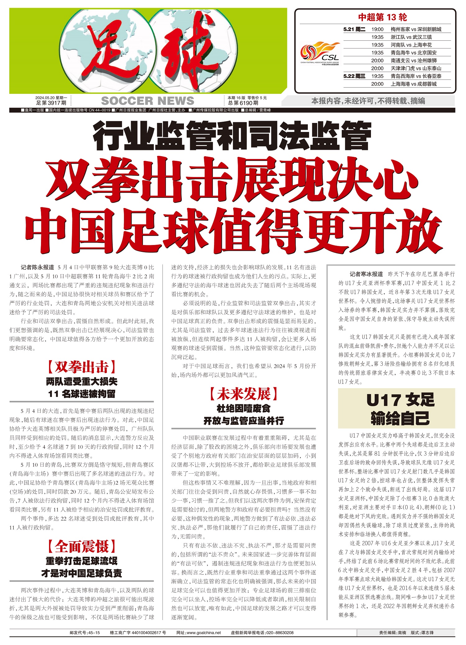 行业监管和司法监管 双拳出击展现决心 中国足球值得更开放