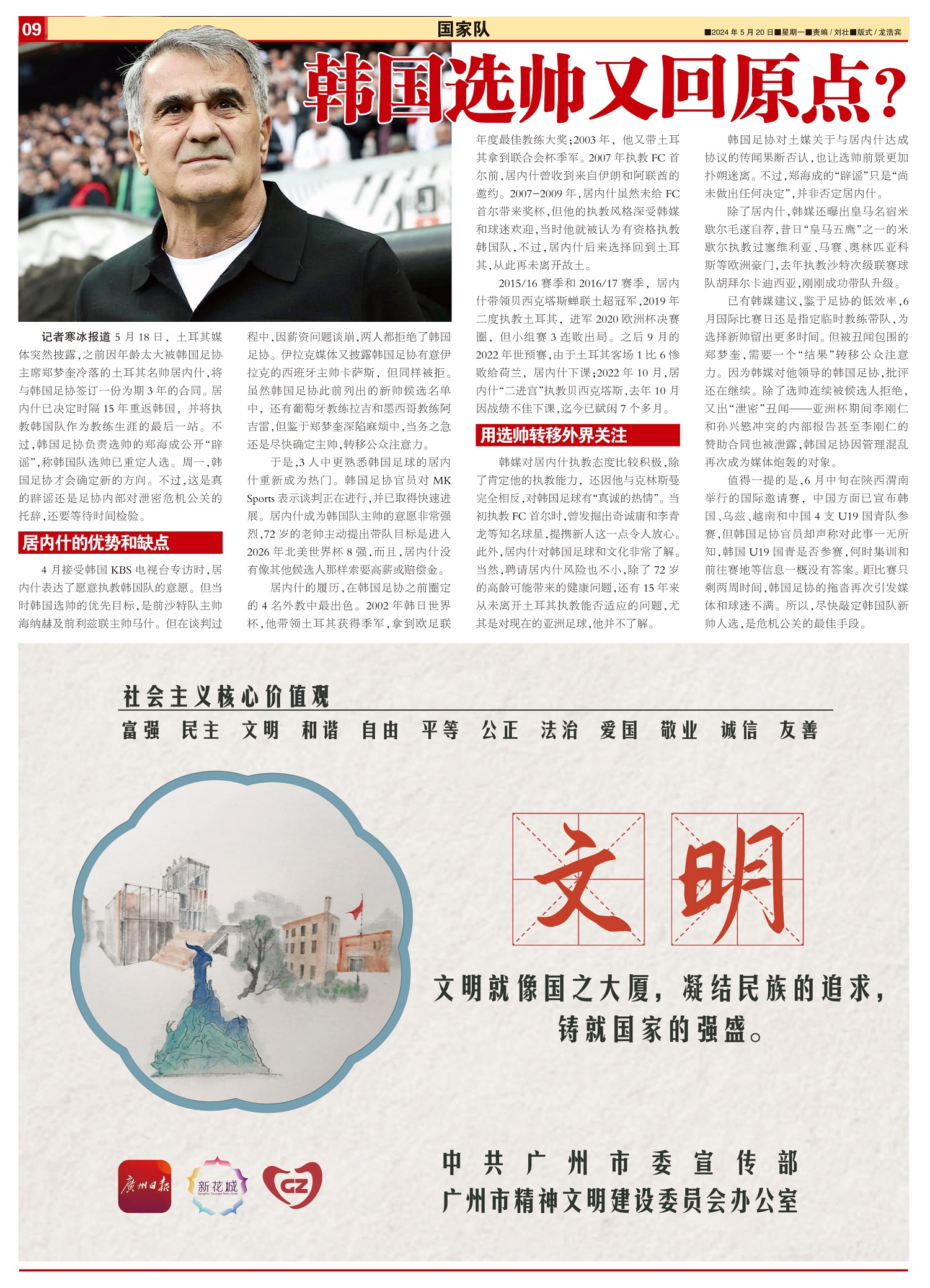 5月18日,土耳其媒体突然披露,之前因年龄太大被韩国足协主席郑梦奎冷落的土耳其名帅居内什,将与韩国足...