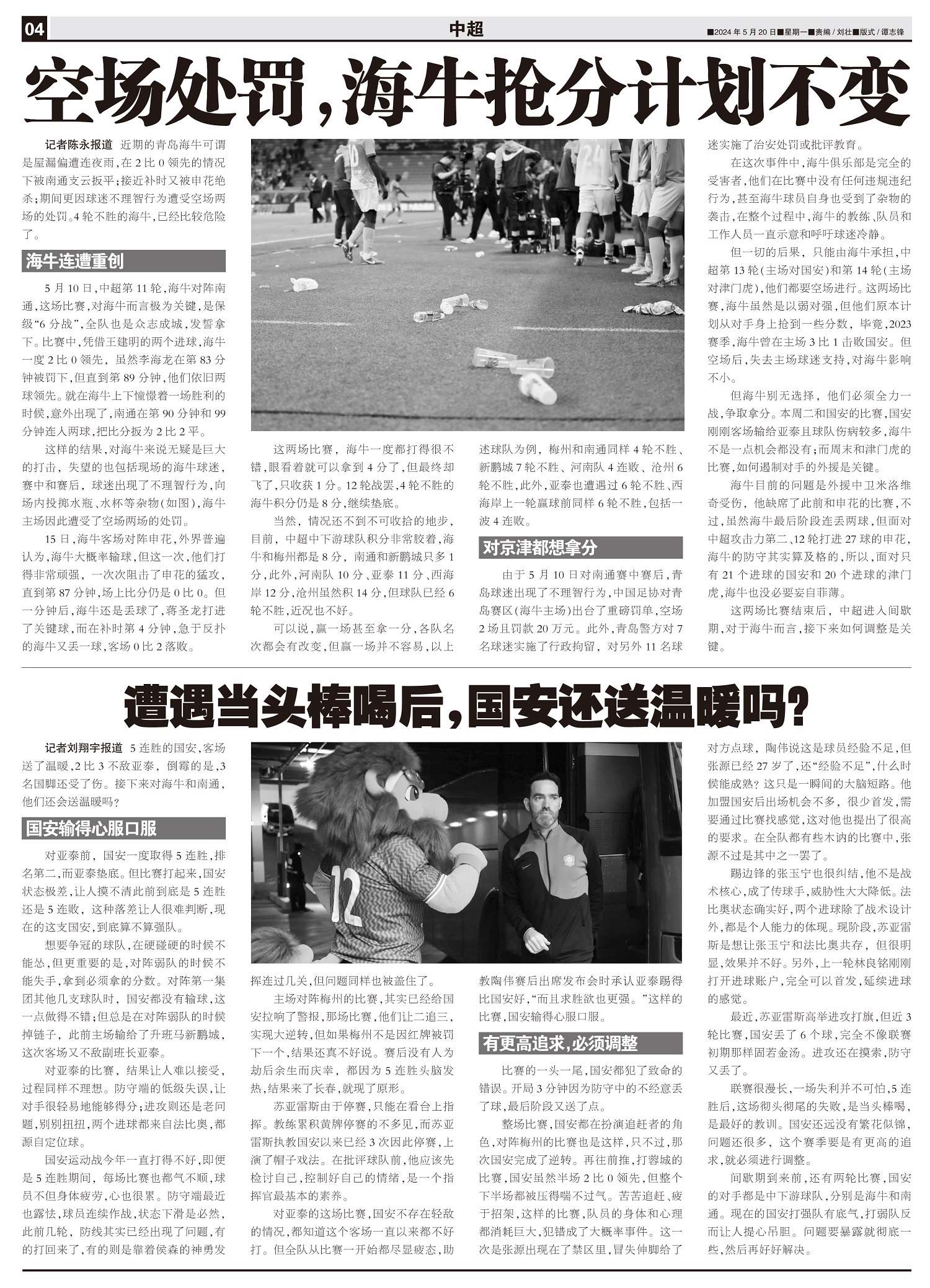 5月4日中甲联赛第9轮大连英博0比1广州,以及5月10日中超联赛第11轮青岛海牛2比2南通支云,两场...