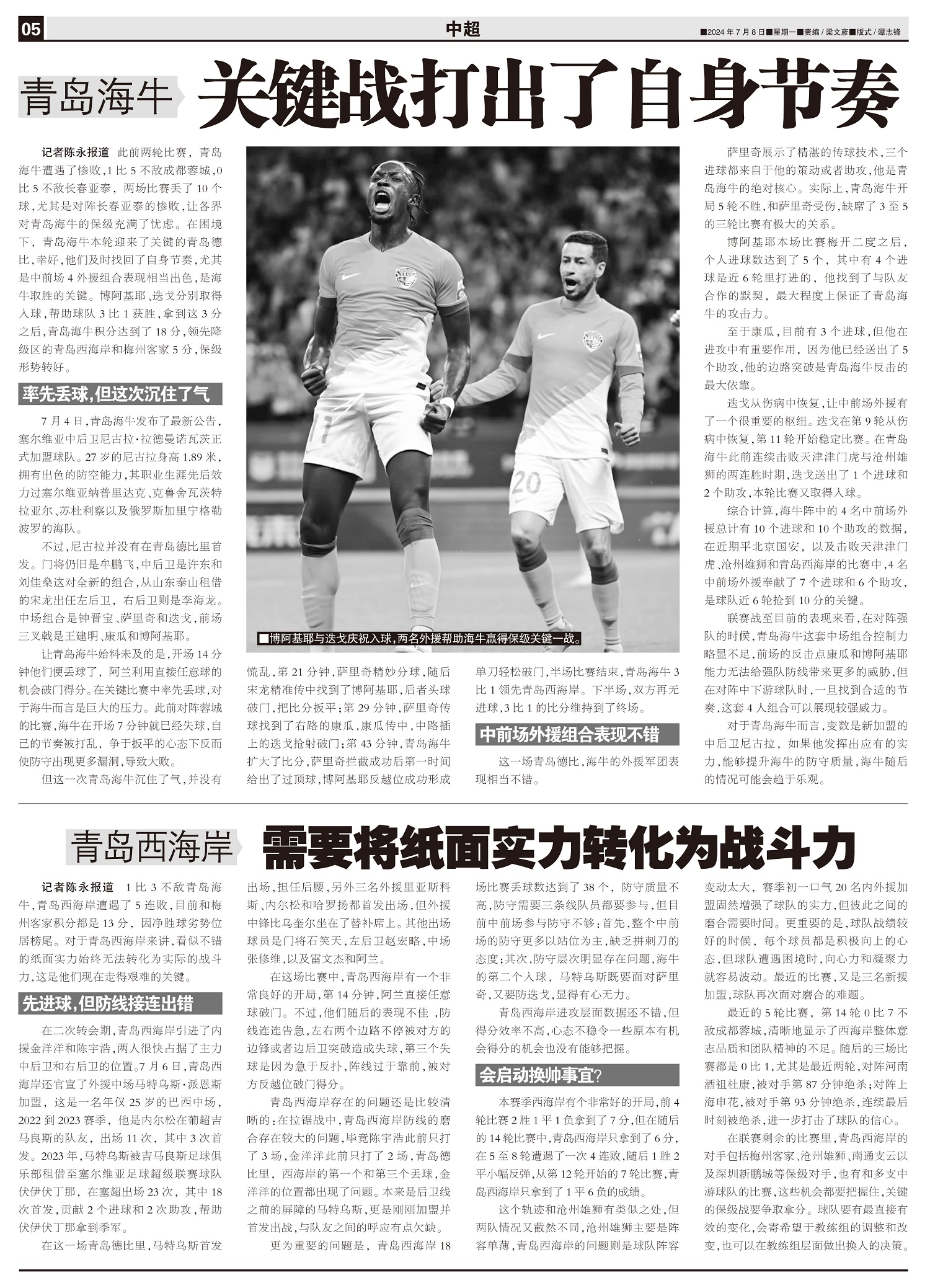 1比3不敌青岛海牛,青岛西海岸遭遇了5连败,目前和梅州客家积分都是13分,因净胜球劣势位居榜尾。对于...