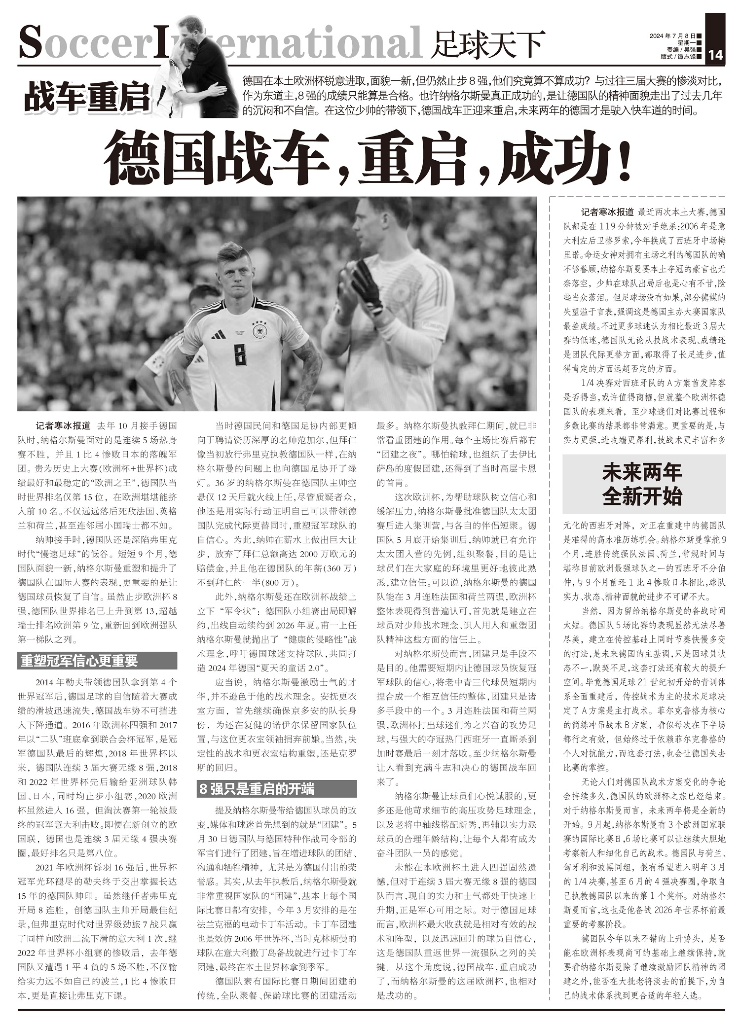 纳格尔斯曼对德国队的改造初见成效,但最终止步8强,未能实现作为东道主至少进入4强的成绩,很大程度上在...