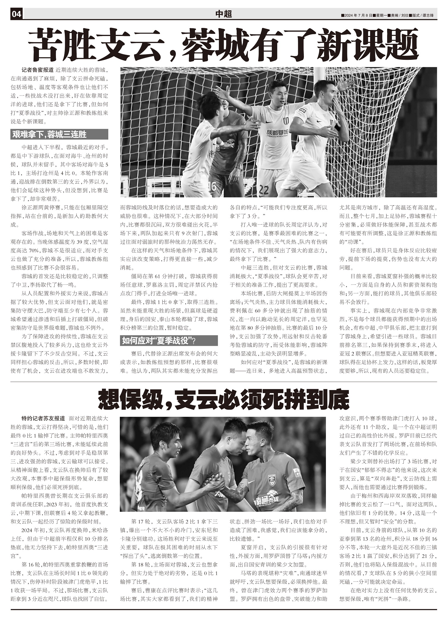 近期连续大胜的蓉城,在南通遇到了麻烦,除了支云拼命死磕,包括场地、温度等客观条件也让他们不适,一些技...